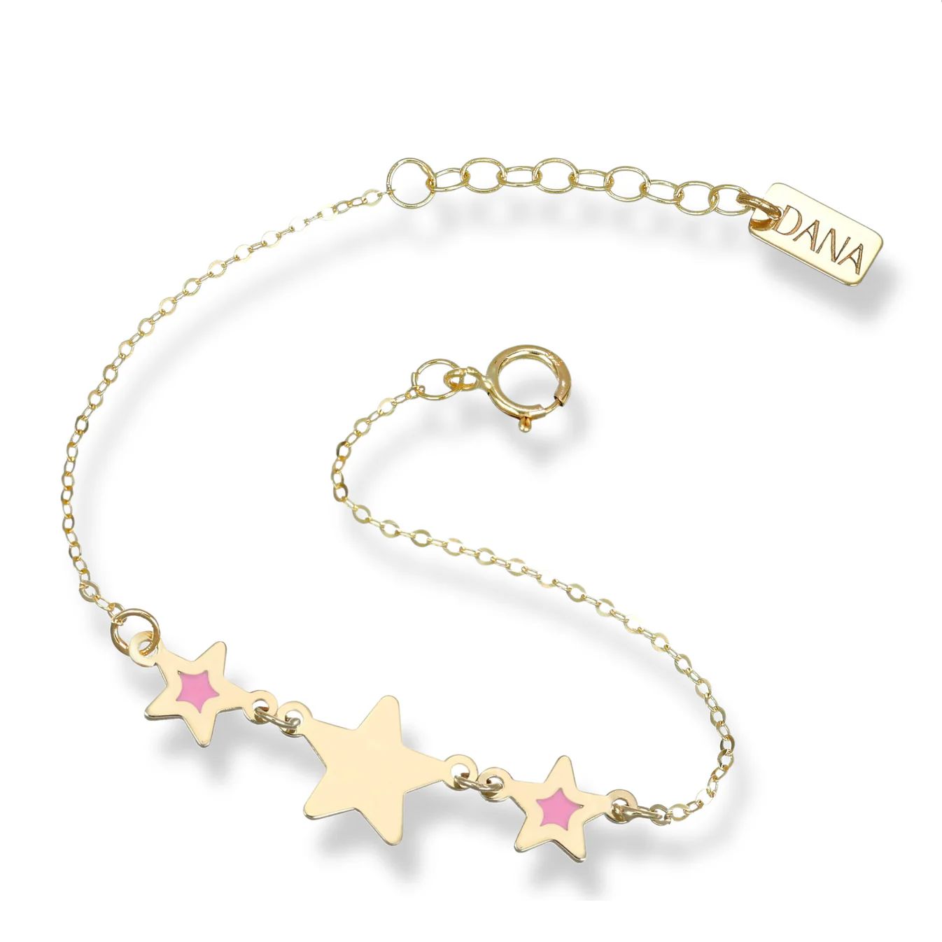 Bracciale della collezione di Dana L’Or 9 Carati, realizzato in Oro Giallo 9 kt., con stelle smaltati laterali e stella centrale lucida.