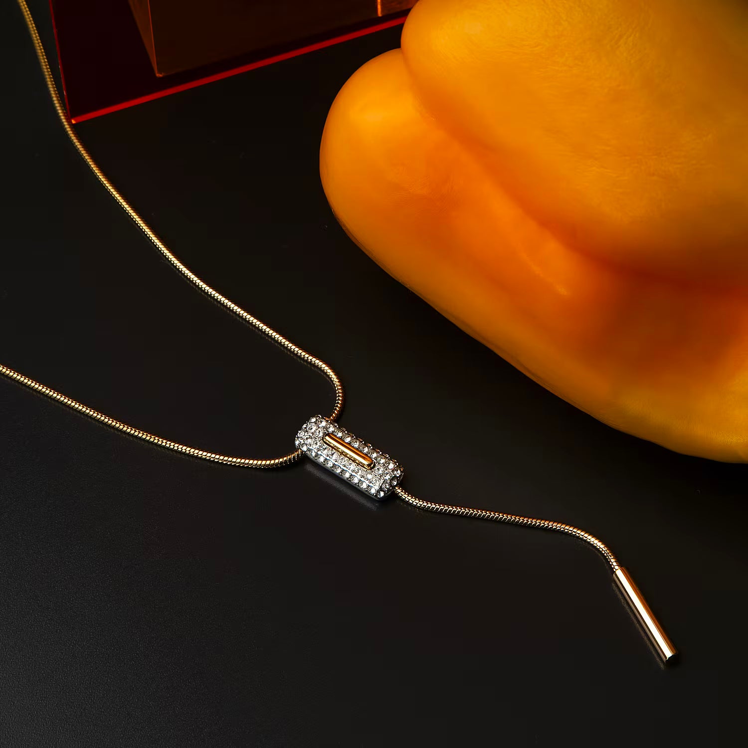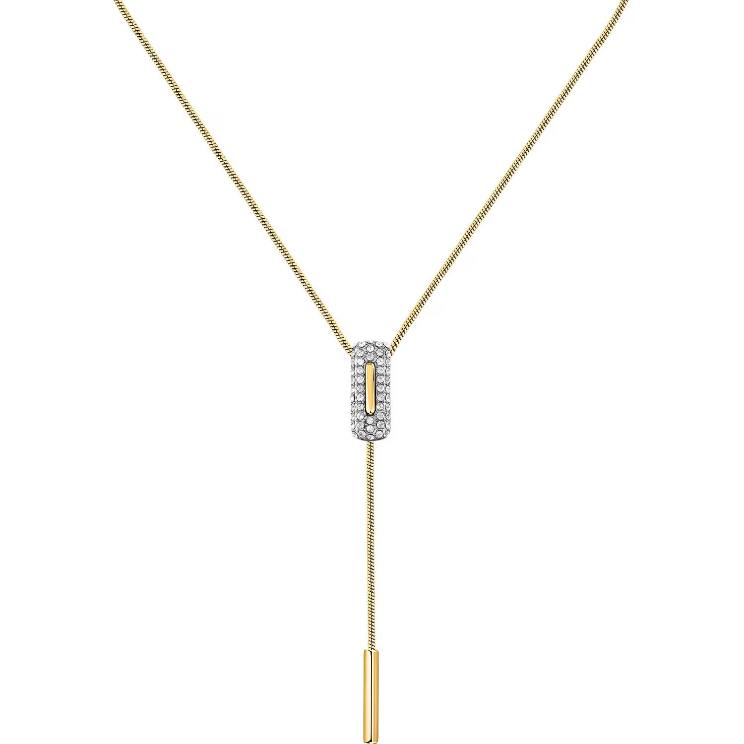 Collana donna della collezione Concept di Trussardi, realizzata in acciaio anallergico con finitura gold e pendente con cristalli.