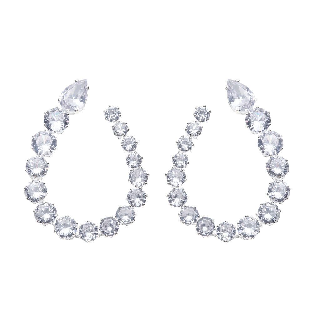 Orecchini a cerchio della collezione "Moda Bijoux" di Ottaviani, realizzati in metallo rodiato, impreziositi da cristalli bianchi.