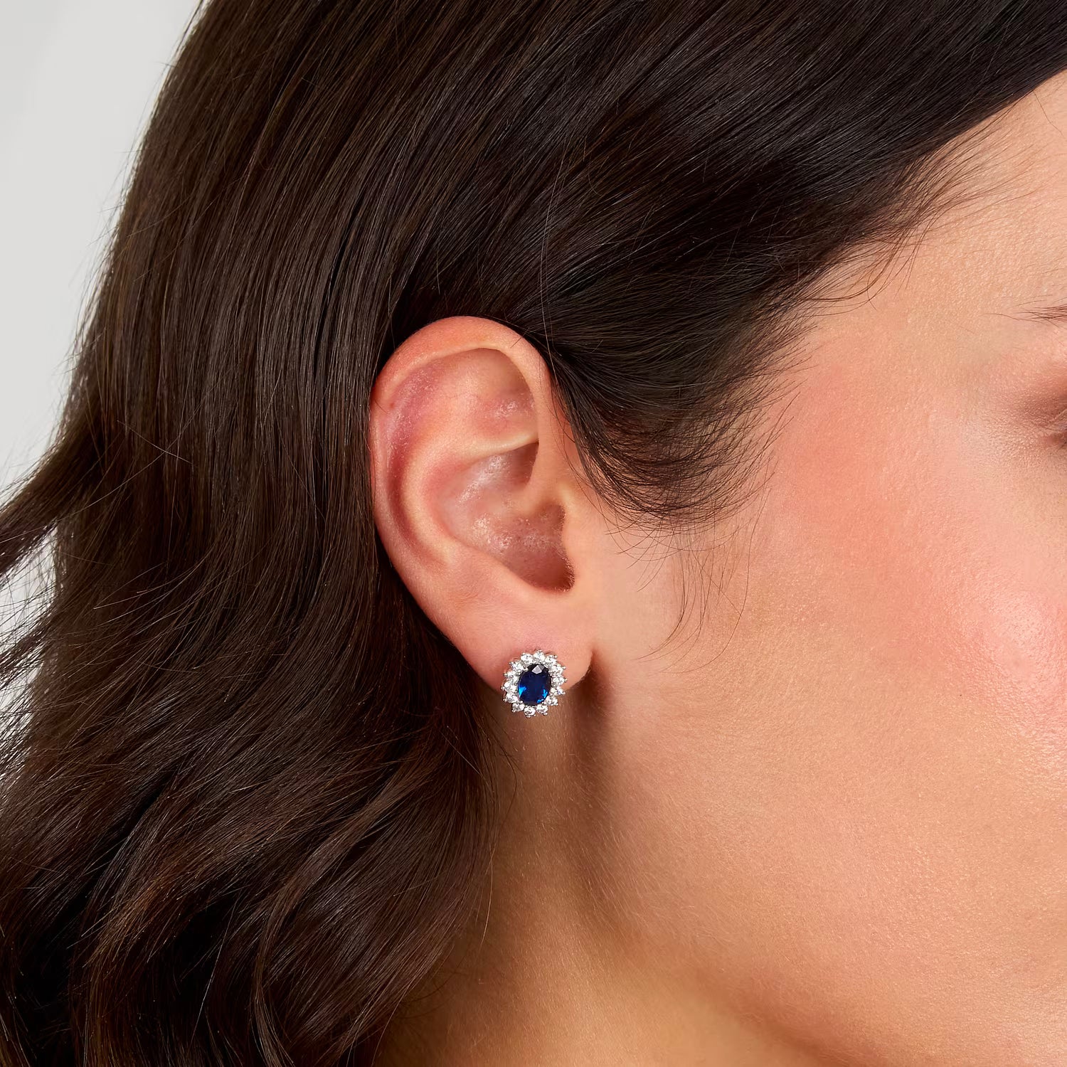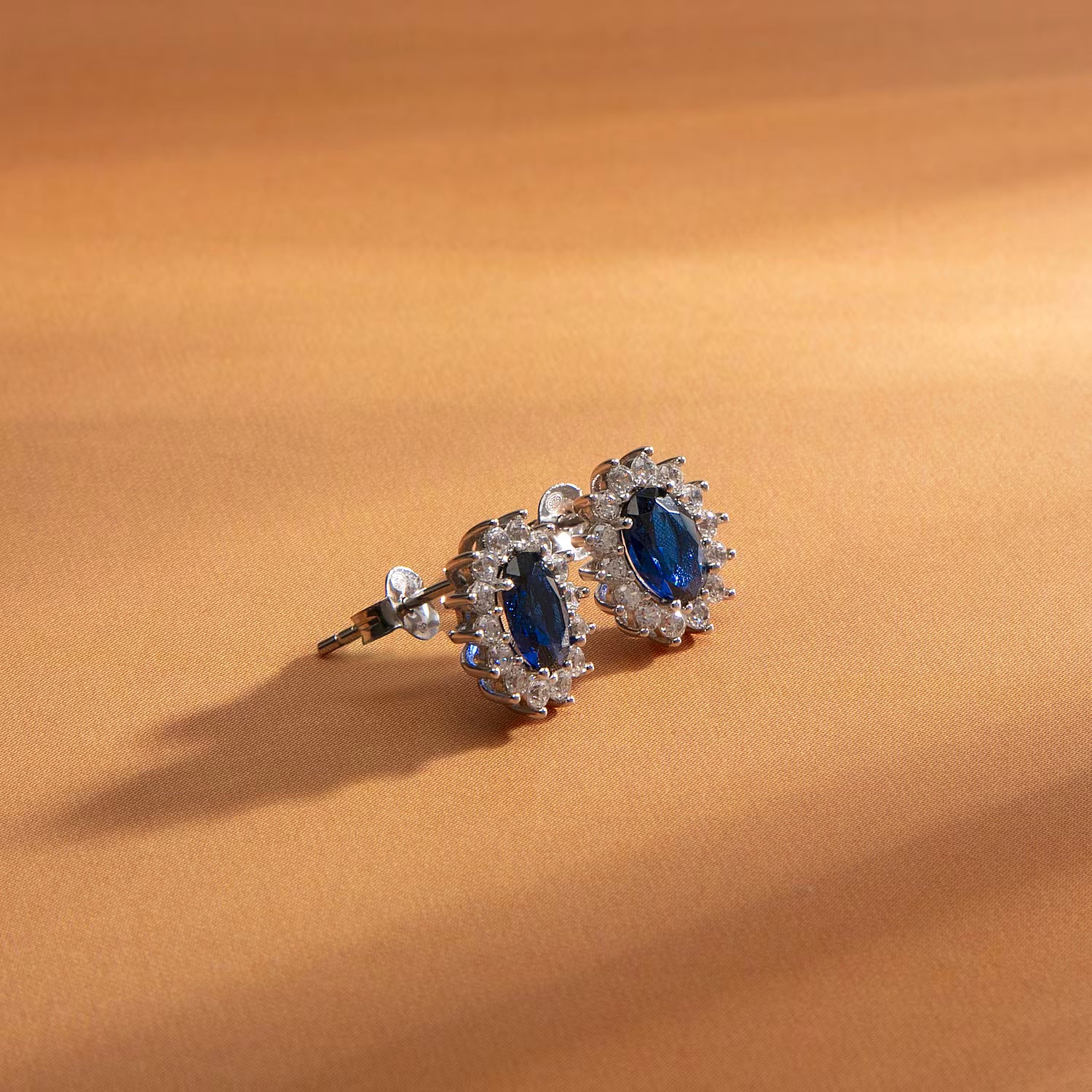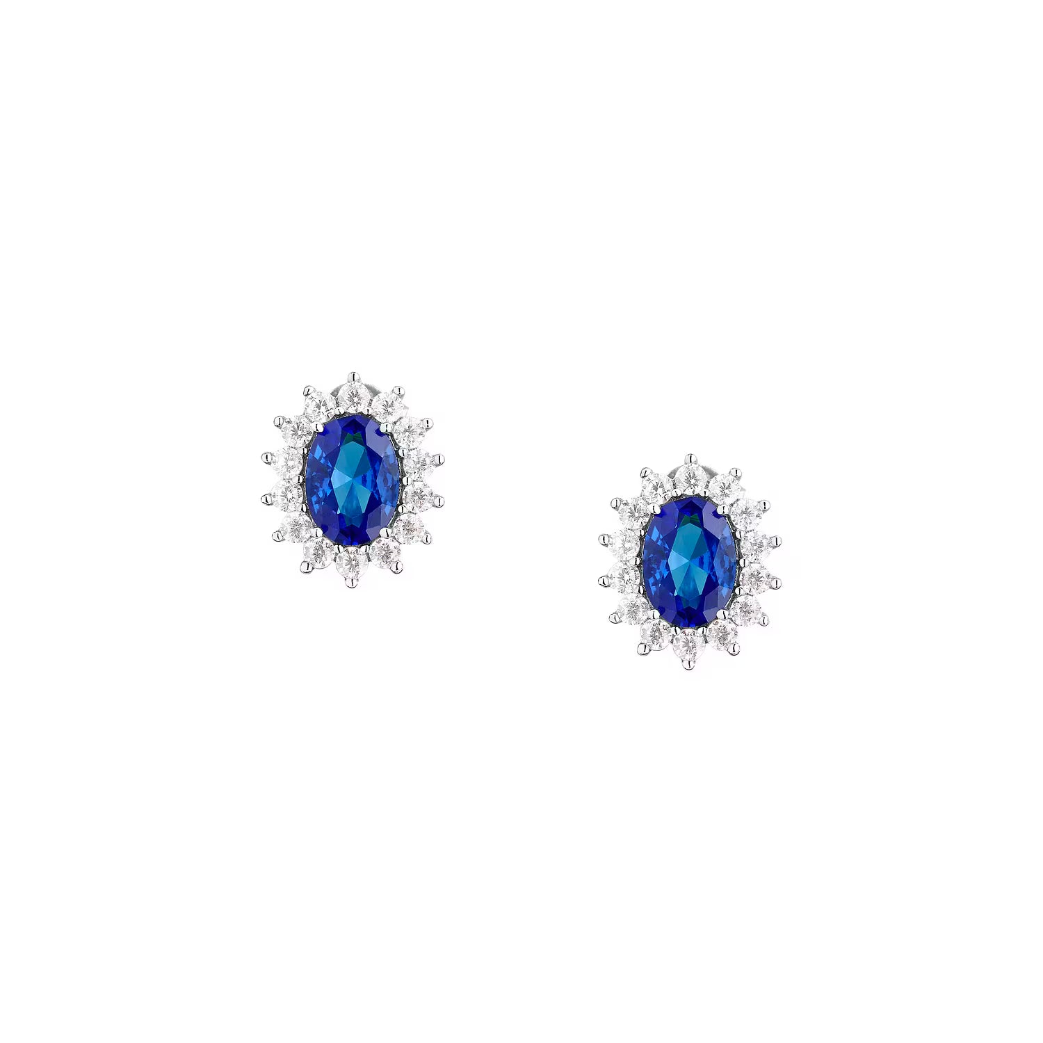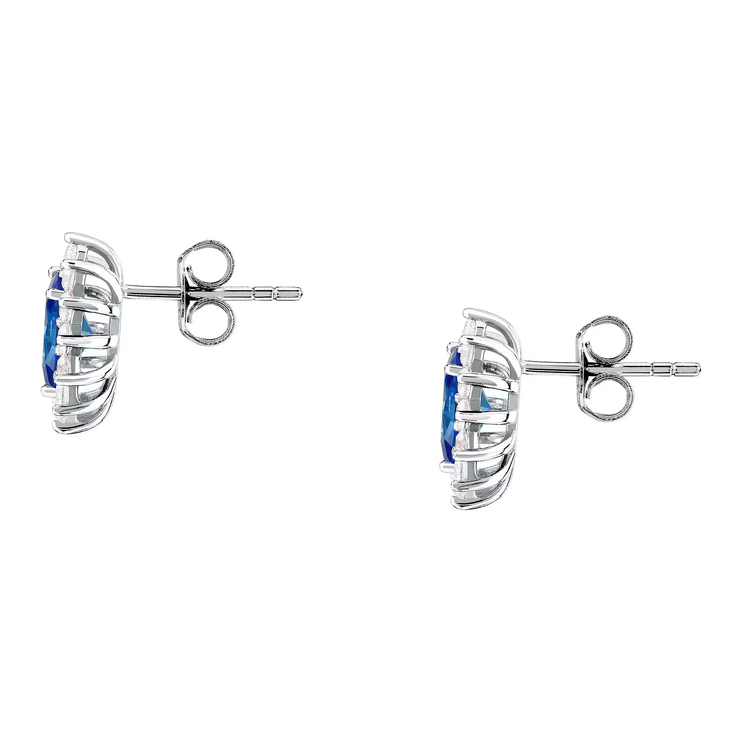 Orecchini a lobo da donna della collezione Tesori di Morellato, realizzati in argento 925%, impreziositi da zirconi blu centrali e pavè di cristalli bianchi.