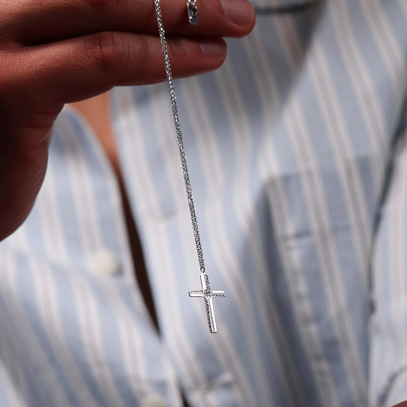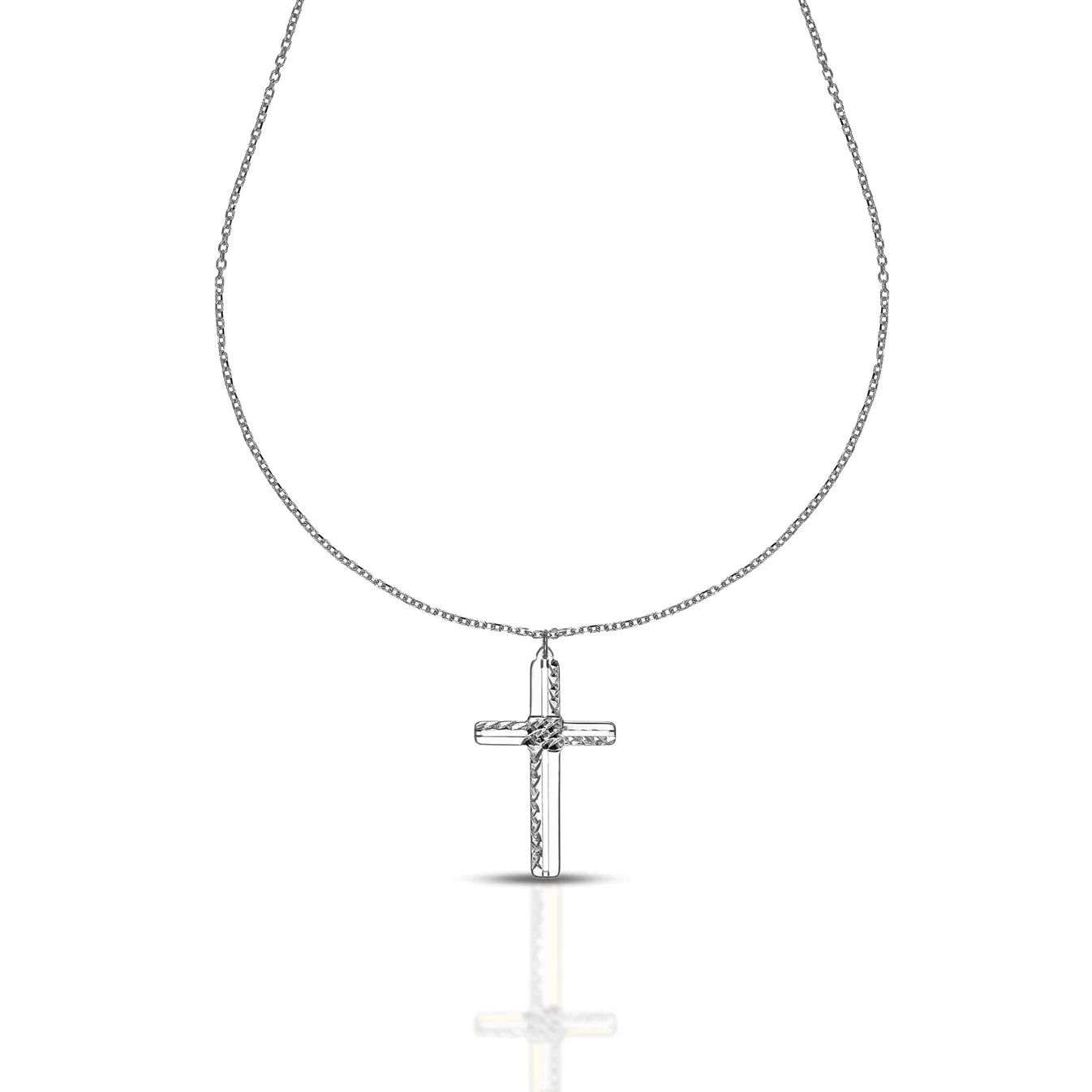 Collana della collezione Corpus Lux di Dana L’Or 9 Carati, realizzata in Oro Bianco 9 kt., con croce lucida e diamantata.