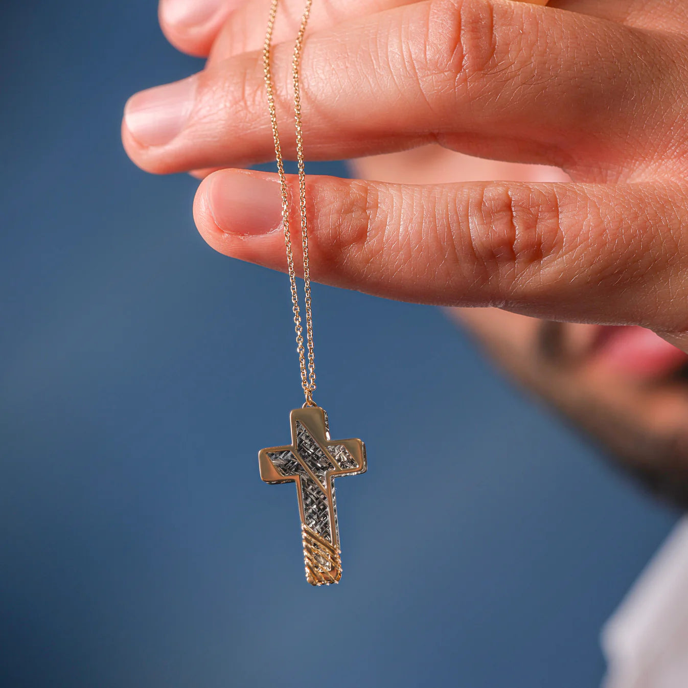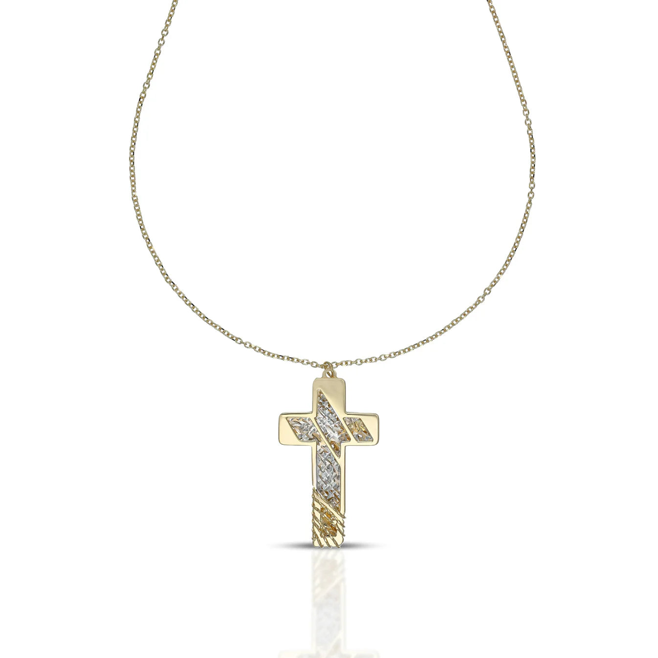 Collana della collezione Corpus Lux di Dana L’Or 9 Carati, realizzata in Oro 9 kt., con croce a doppia lastra e filo diamantato.