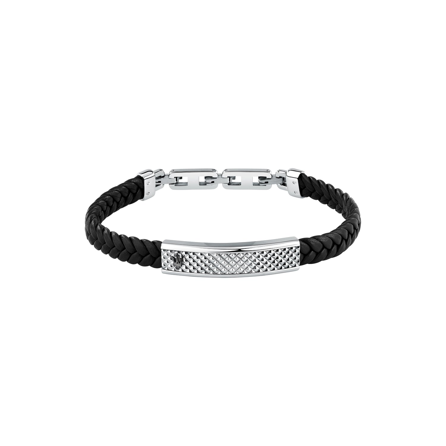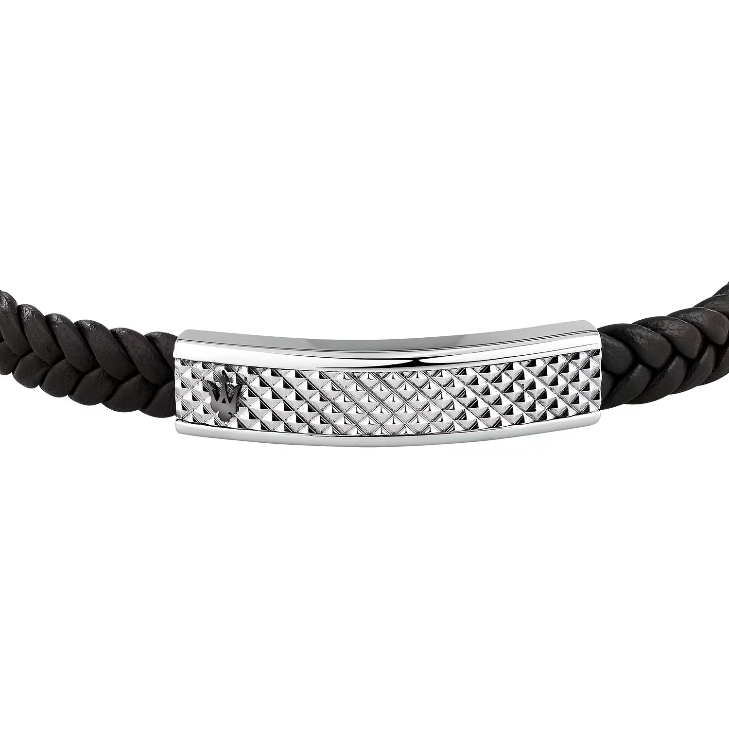 Bracciale da uomo appartenente alla collezione "Recycled Leather" di Maserati, realizzato in pelle rigenerata con piastra centrale.