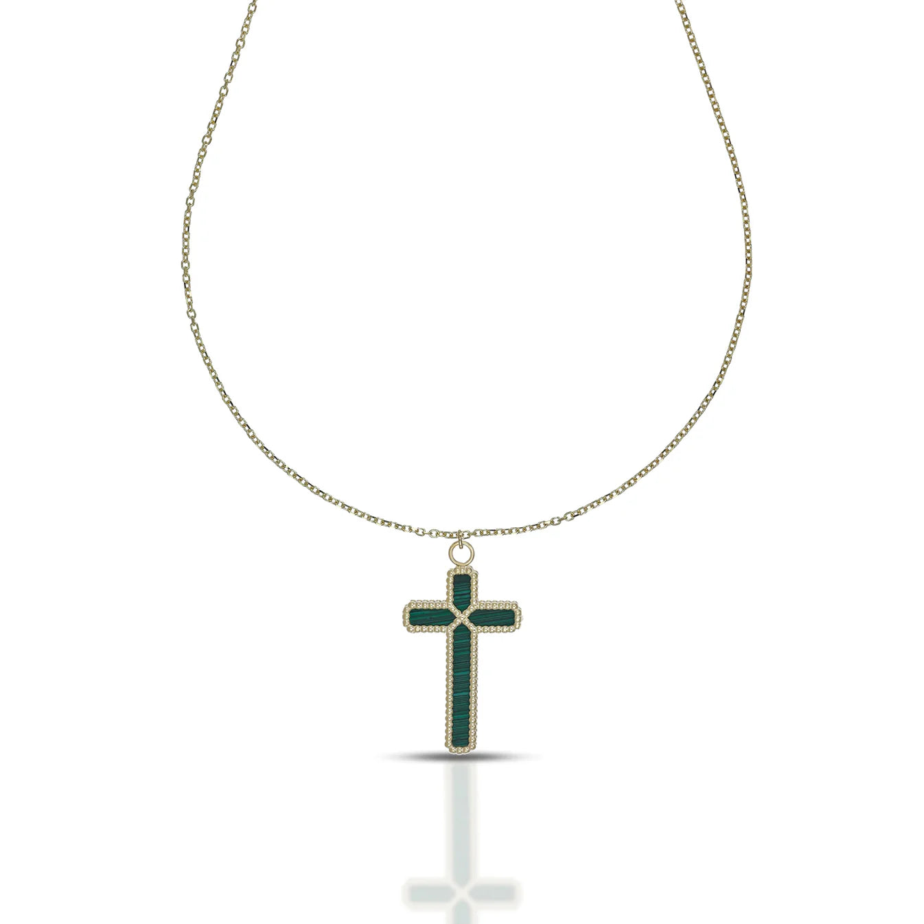 Collana della collezione Corpus Lux di Dana L’Or 9 Carati, realizzata in Oro Giallo 9 kt., con malachite, finitura diamantata e contorno decorato.