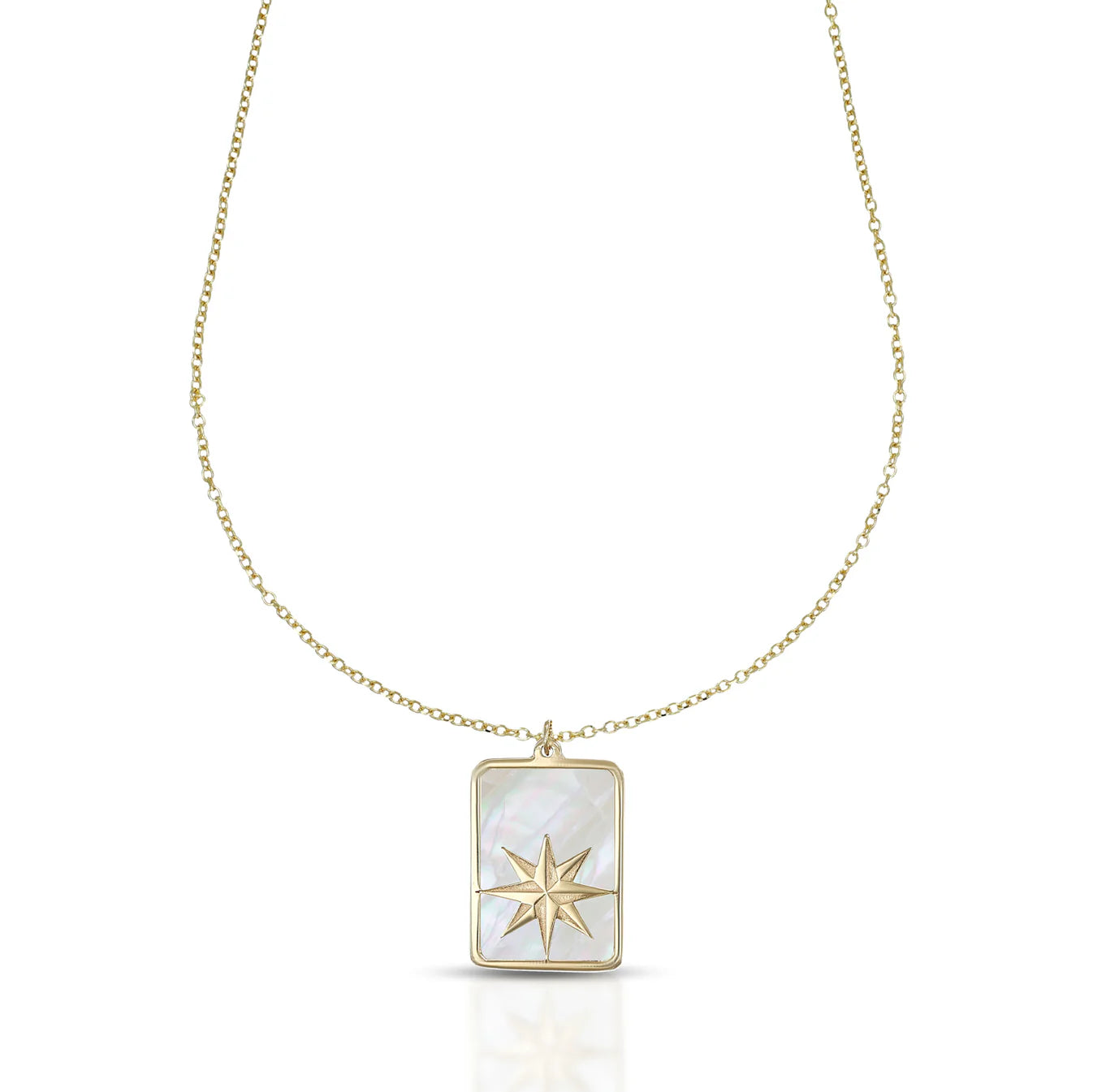 Collana della collezione Nautilus di Dana L’Or 9 Carati, realizzata in Oro Giallo 9 kt., con piastra rettangolare impreziosita da madreperla e rosa dei venti.