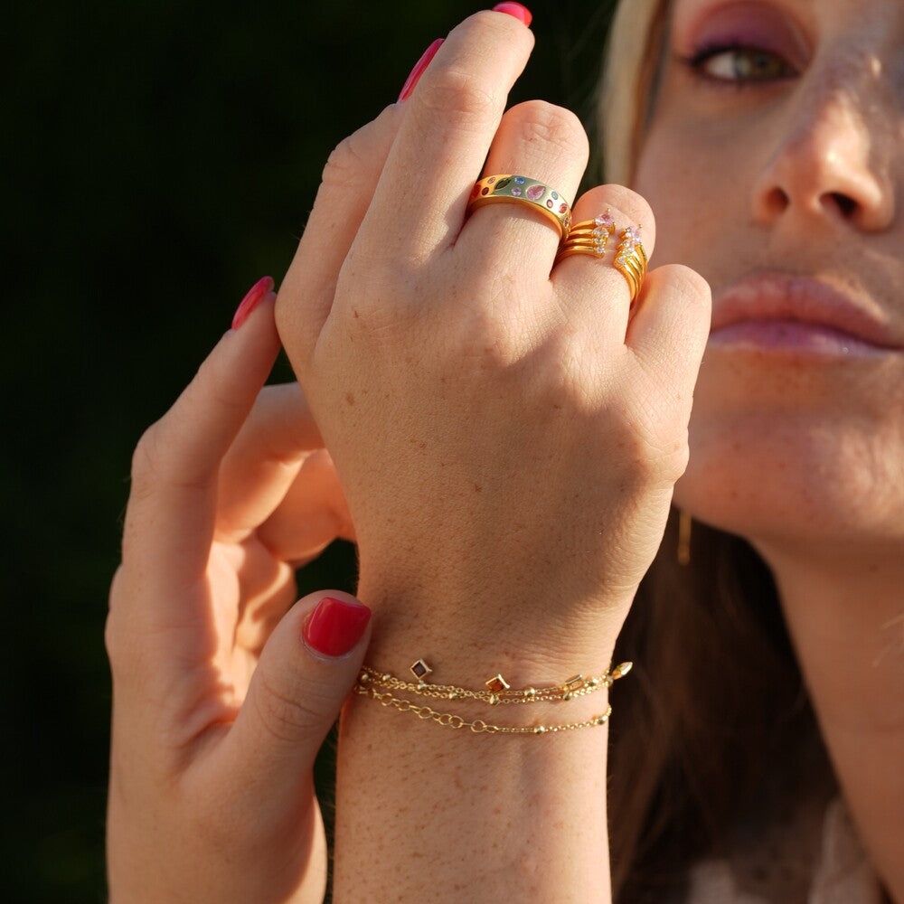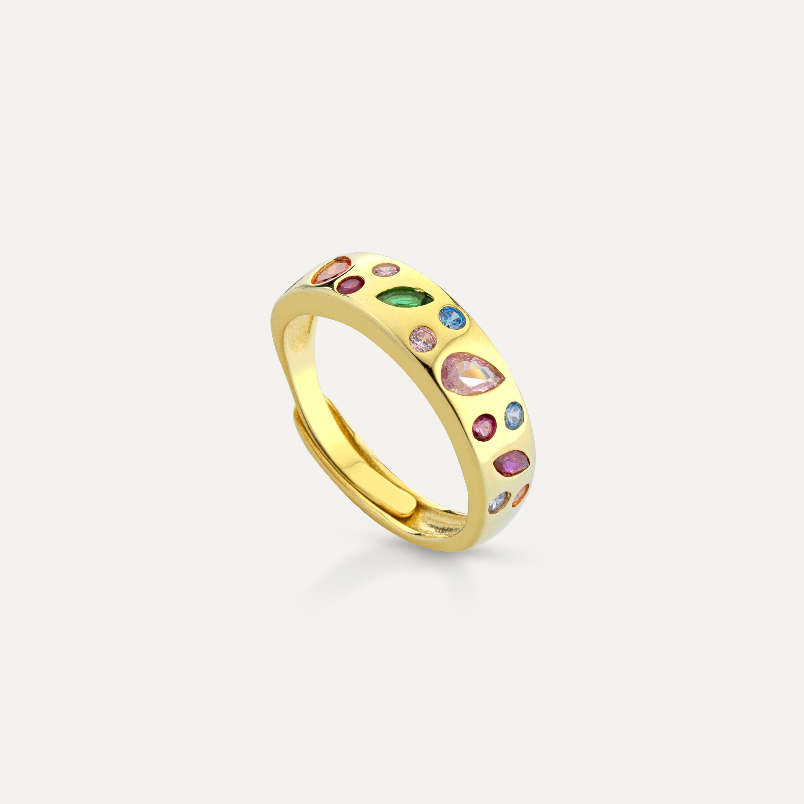 Anello Rainbow realizzato in Argento 925% rodiato in Oro Giallo 18 kt. impreziosito da zirconi multicolor.