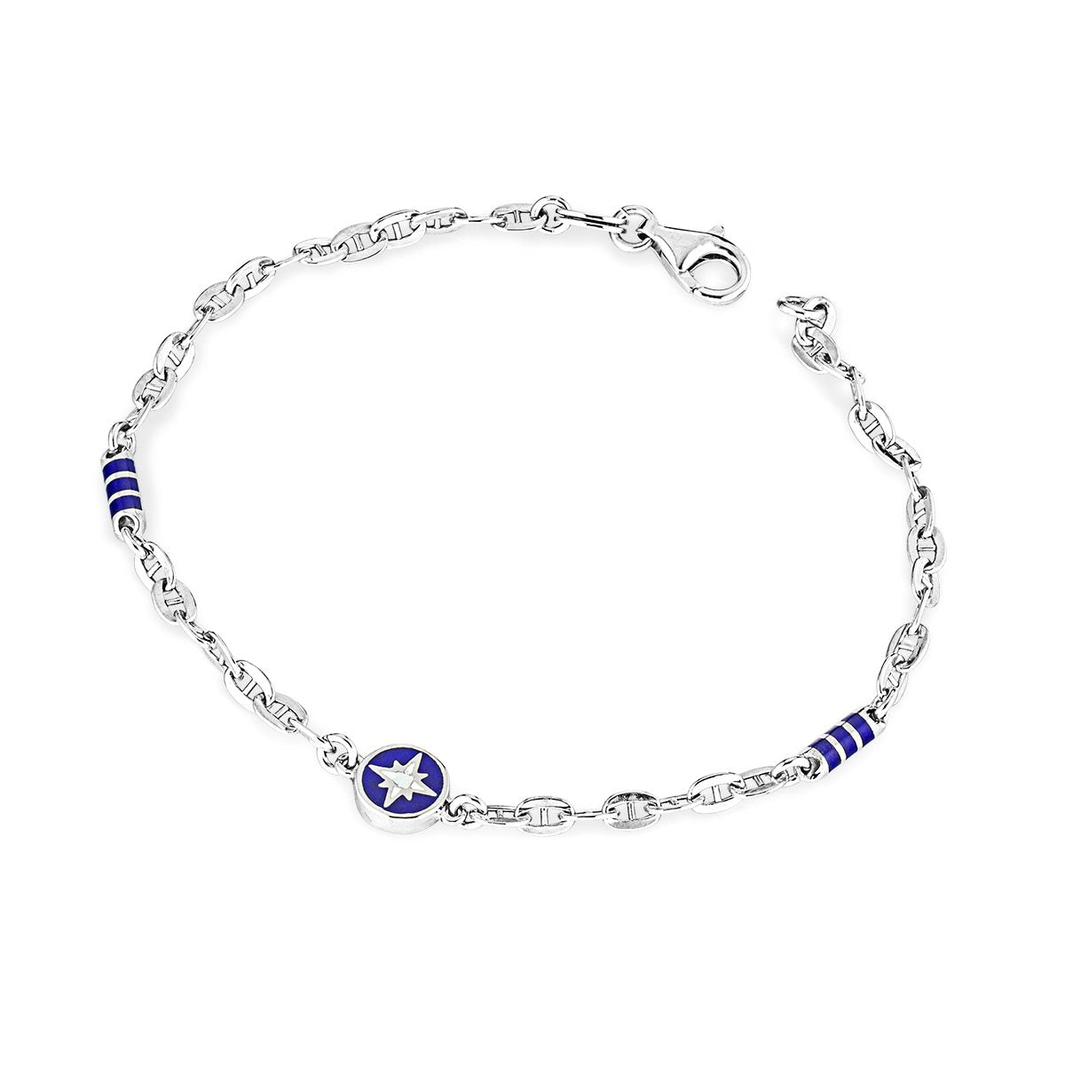 Bracciale da uomo della collezione Hector by Marcello Pane, realizzato in argento 925% con dettagli blu.