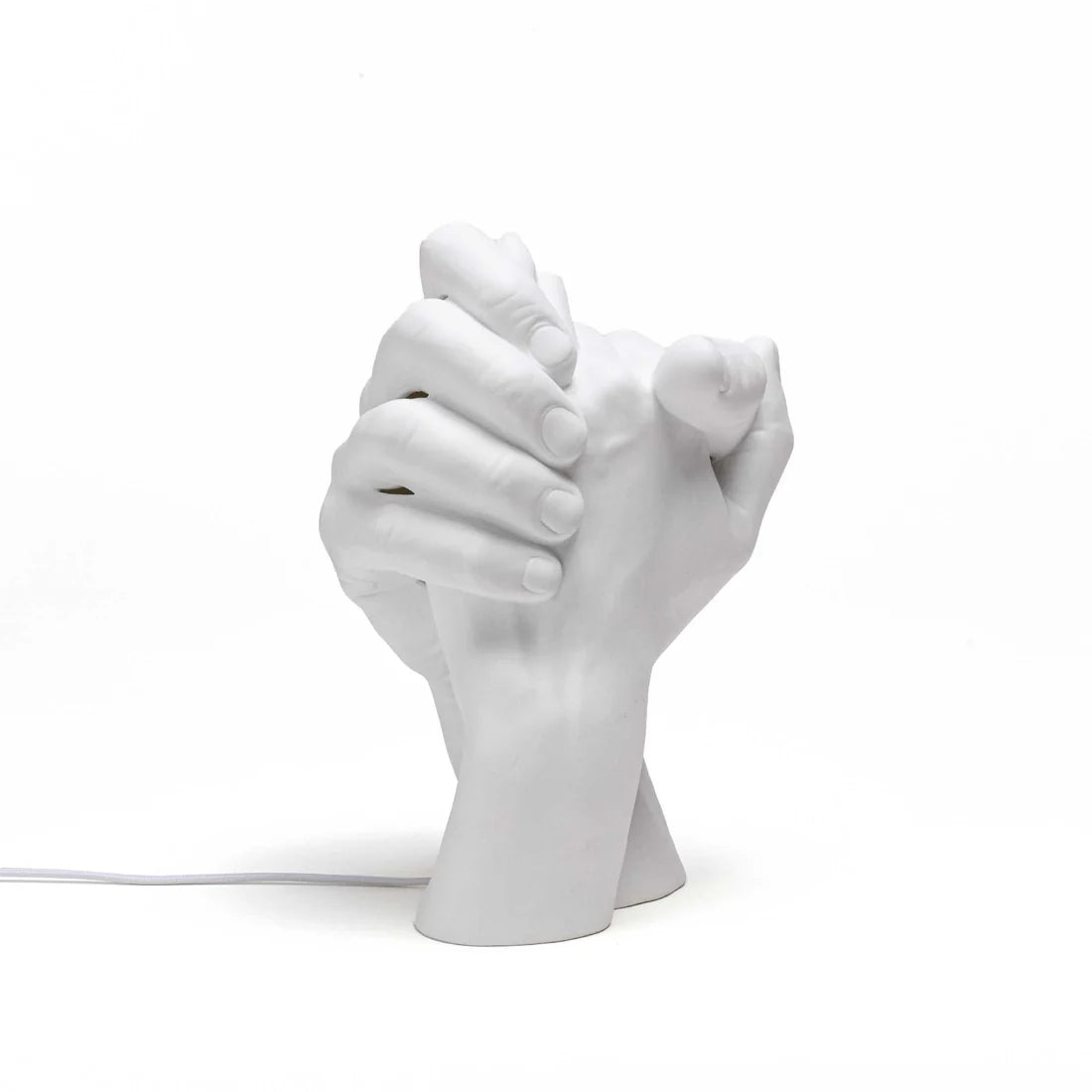 Questa lampada raffigura due mani intrecciate, simbolo di connessione, affetto e presenza condivisa, trasformando la luce quotidiana in un oggetto dal forte valore emozionale.