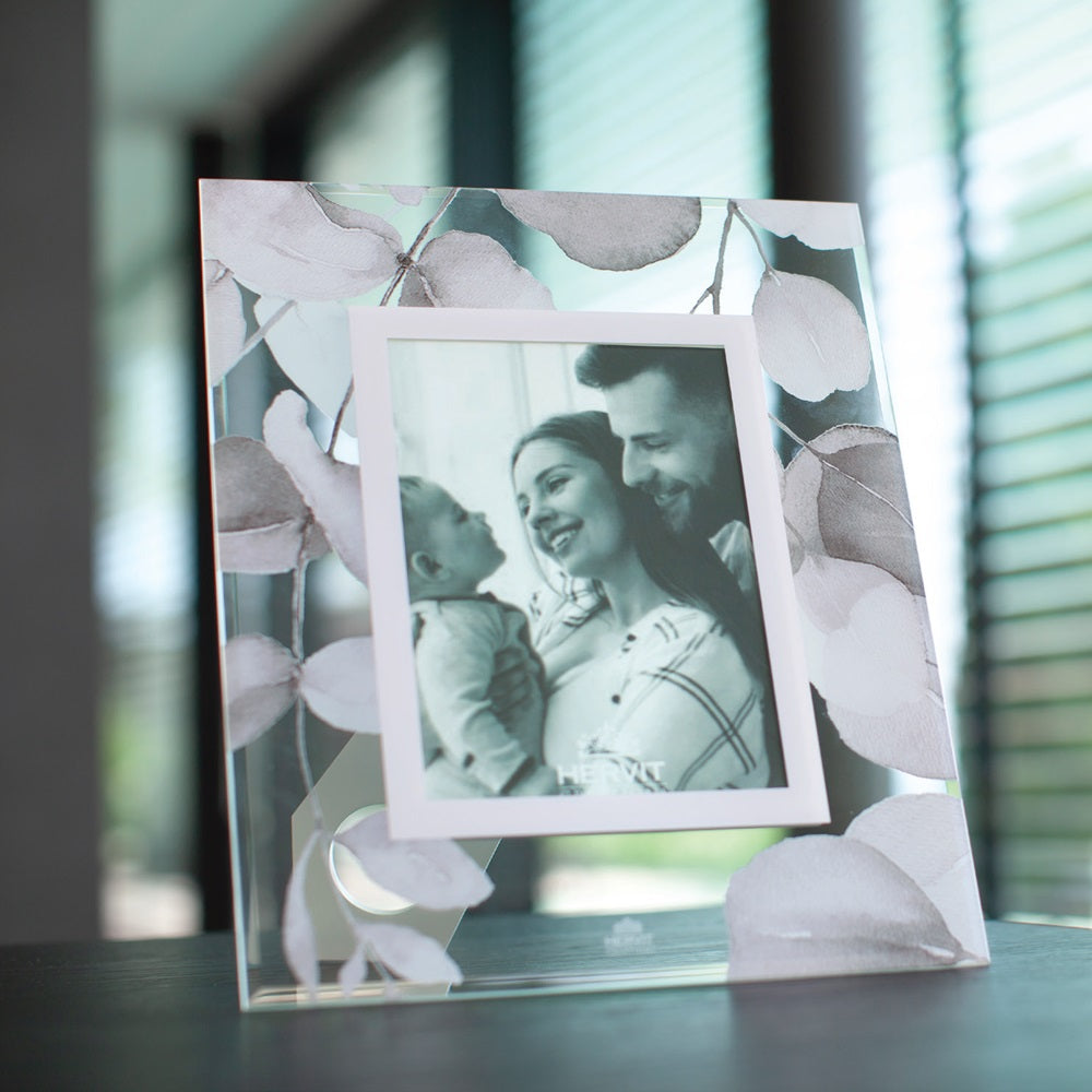 Cornice Portafoto appartenente alla collezione "Botanic Plus" di Hervit, realizzata in vetro glass decorato.