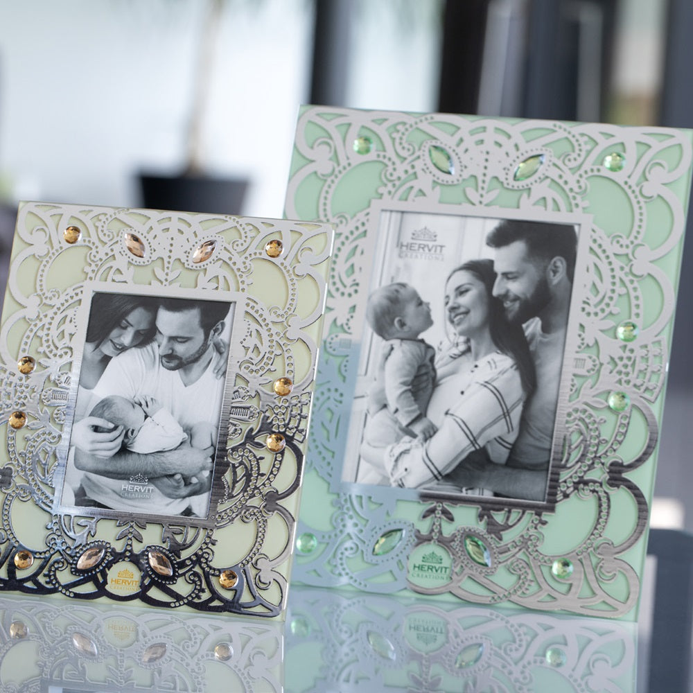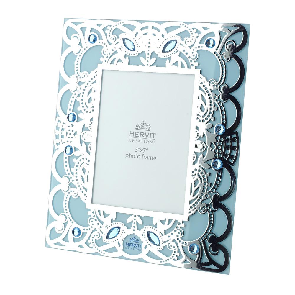 Cornice Portafoto appartenente alla collezione "Byzantium" di Hervit, realizzata in vetro glass decorato, impreziosita da zirconi.