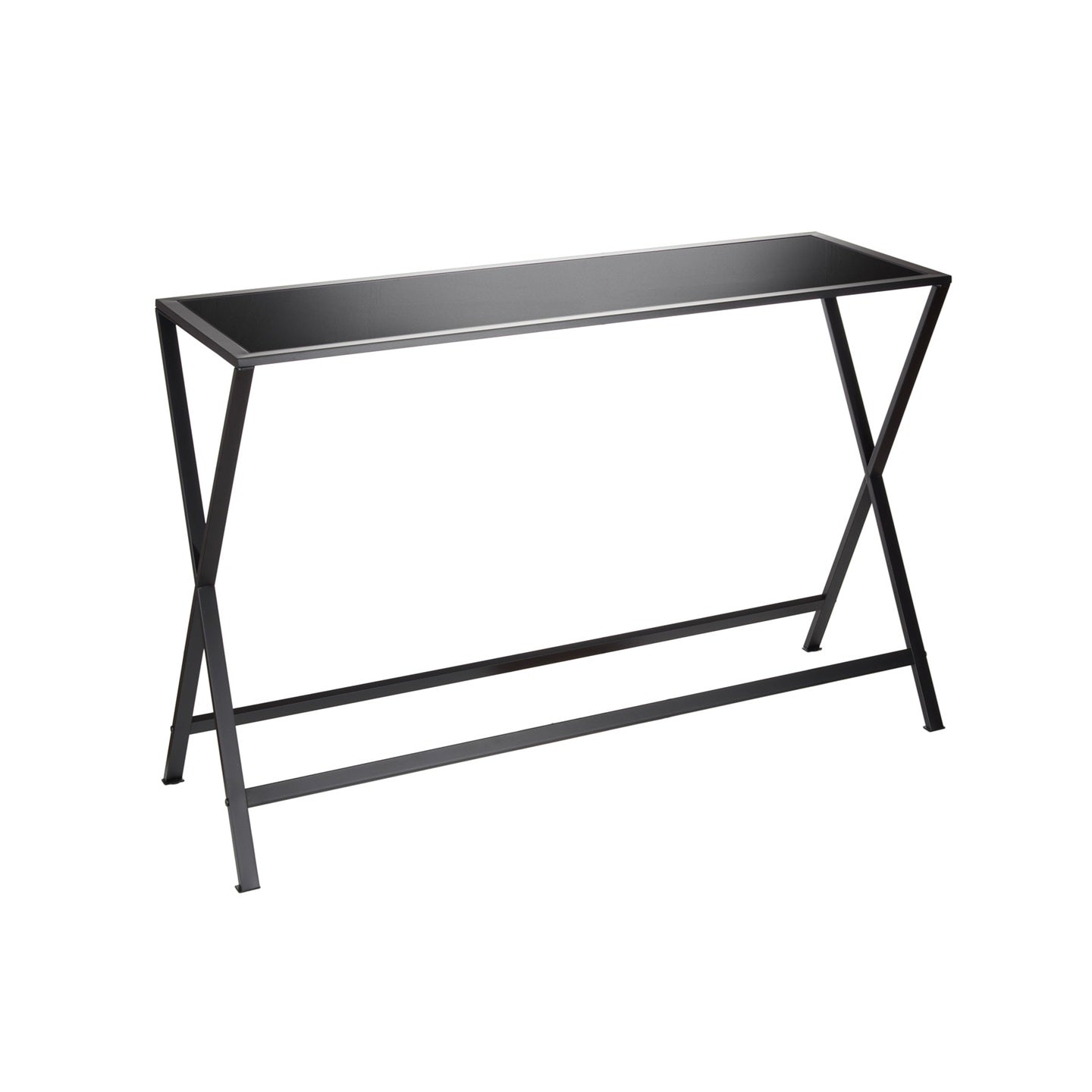 Consolle della collezione Urban di L'Oca Nera, caratterizzata da un ripiano in vetro e con struttura in metallo nero.