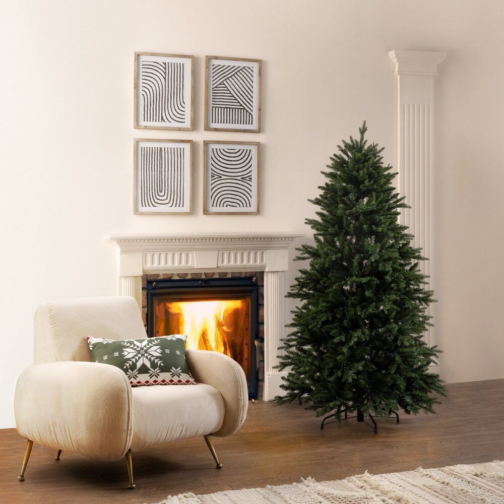 Con altezza di 180 cm. e un diametro di 112 cm, questo albero è realizzato con materiali ignifughi e atossici.