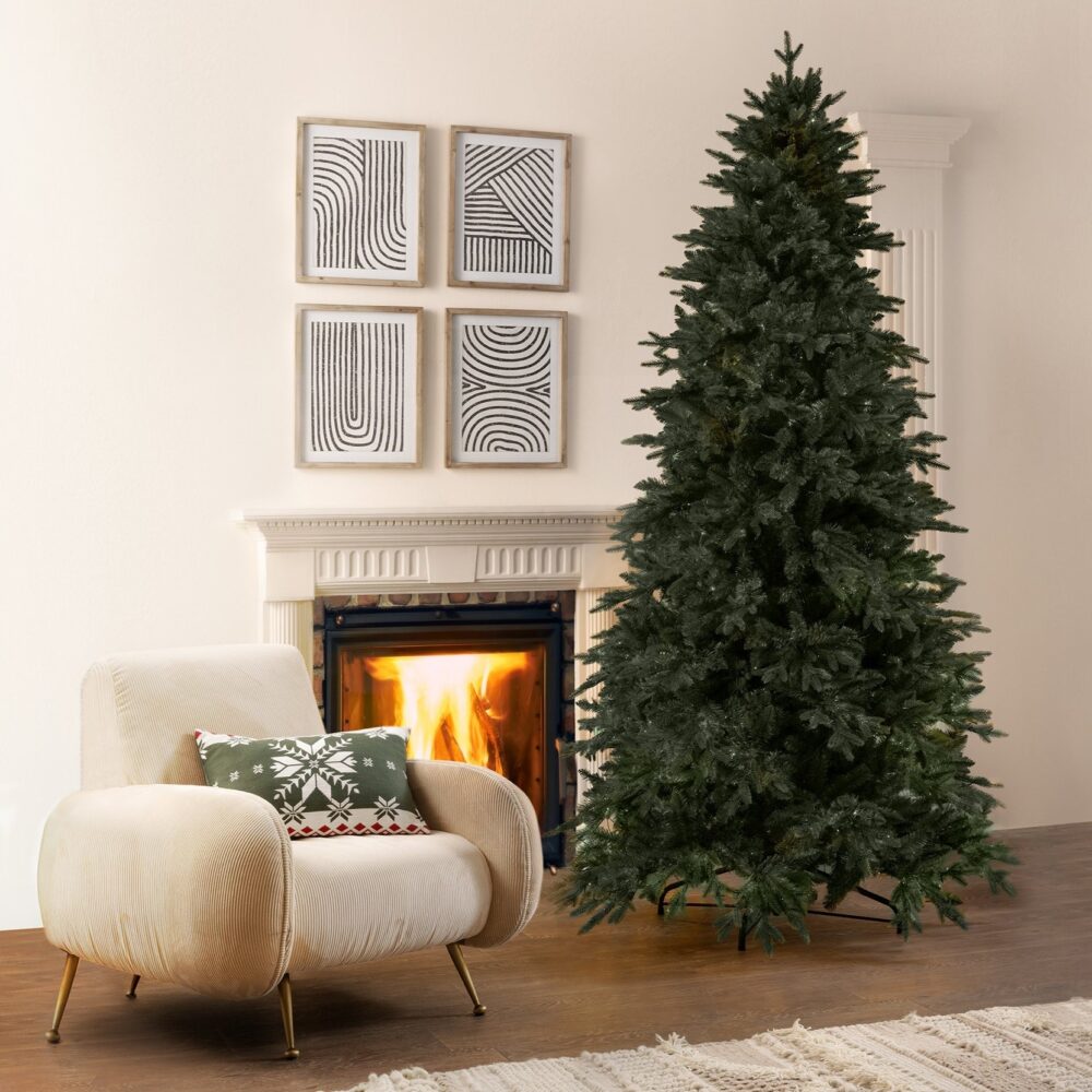 Con altezza di 240 cm. e un diametro di 139 cm, questo albero è realizzato con materiali ignifughi e atossici.