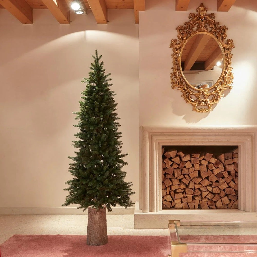 Albero Pino Slim della collezione di Enzo De Gasperi, caratterizzato da 1094 rami (636PE+458PVC) e da base in metallo.