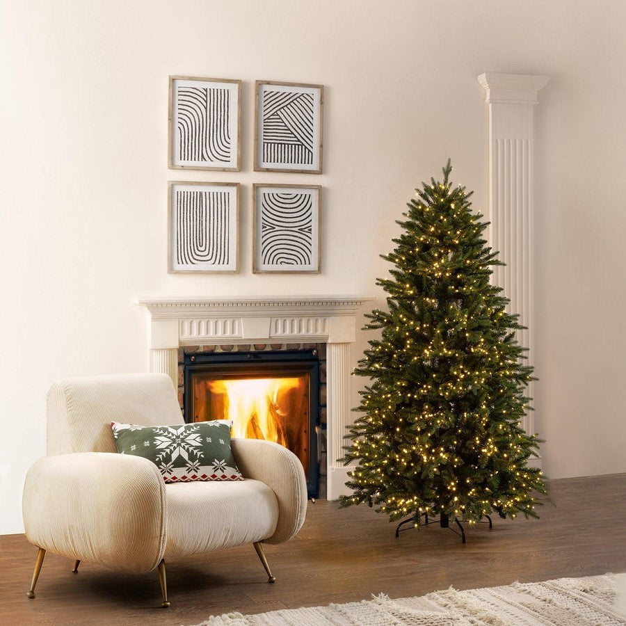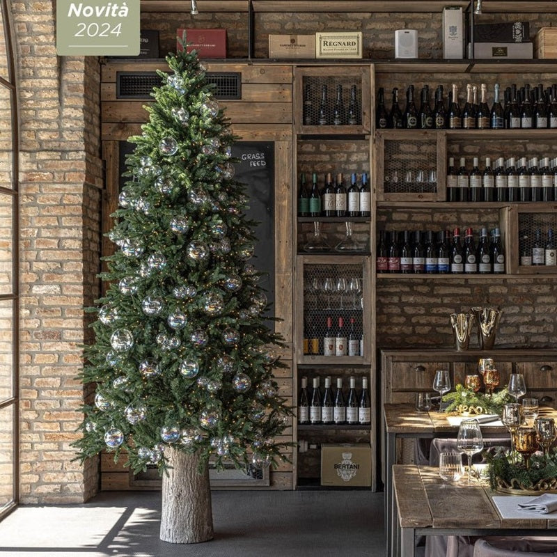Con altezza di 180 cm. e un diametro di 112 cm, questo albero è realizzato con pino verde intenso, ignifugo e atossico.