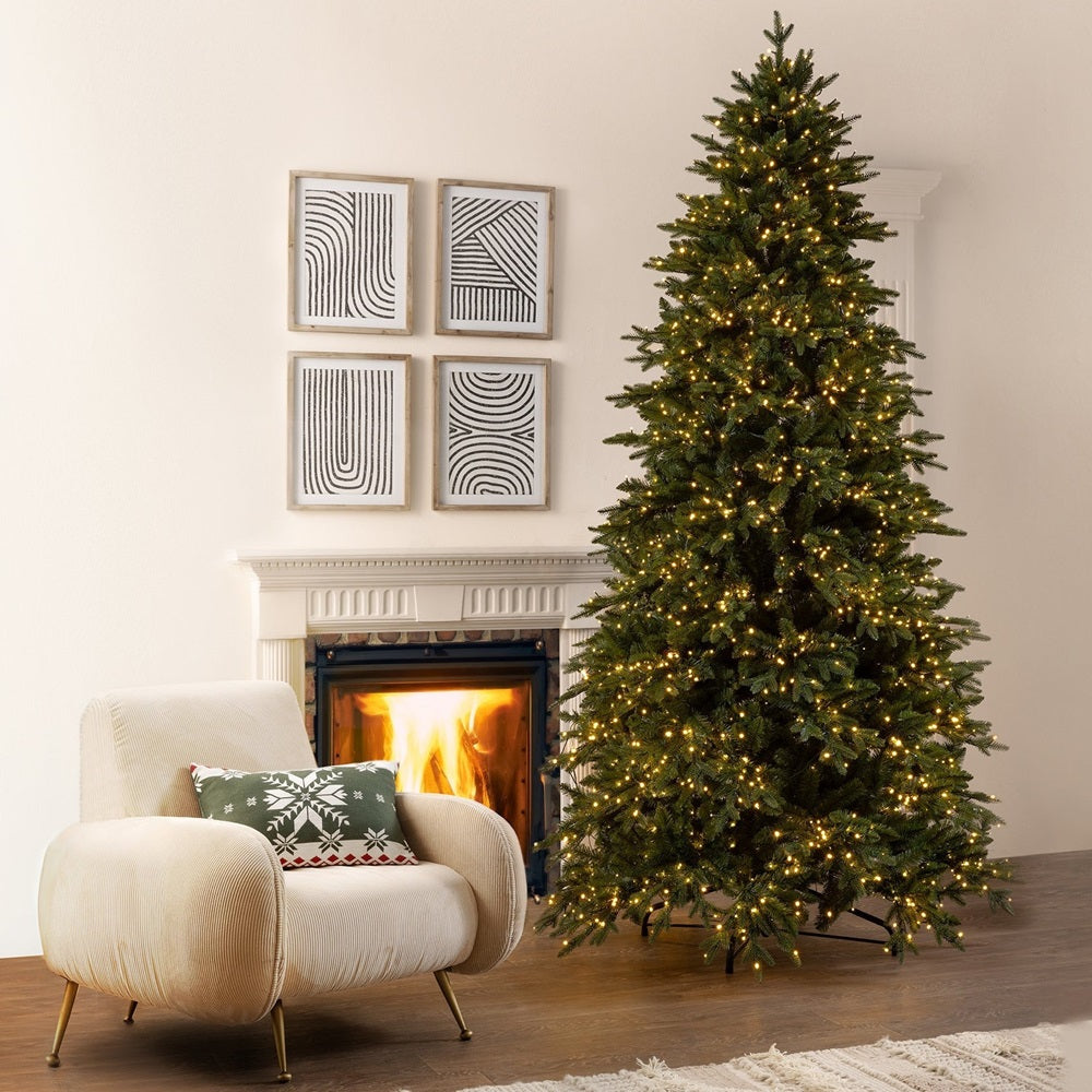 Con altezza di 270 cm. e un diametro di 151 cm, questo albero è realizzato con pino verde intenso ignifugo e atossico.