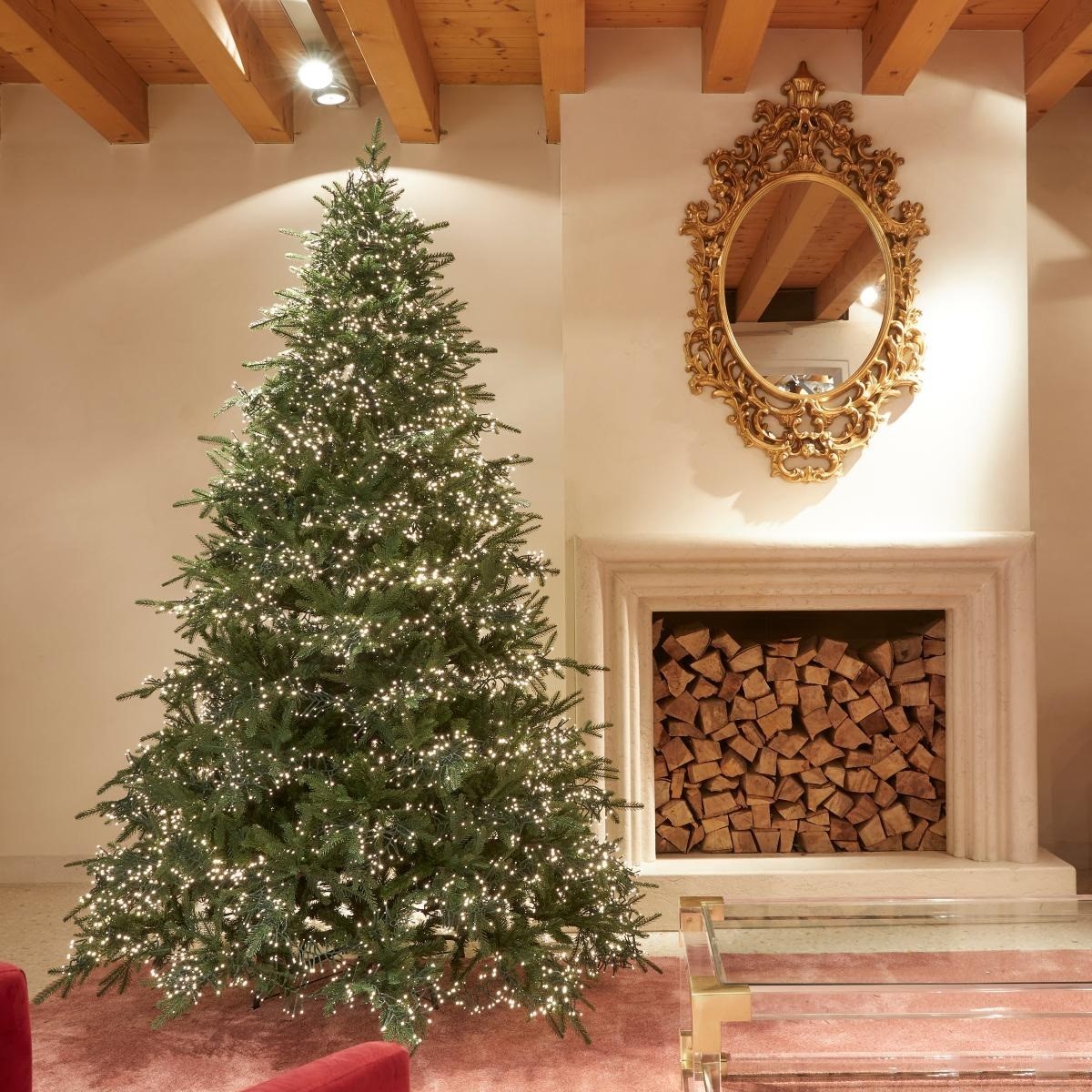 Albero di Natale della collezione di Enzo De Gasperi, caratterizzato da: 4255 rami (3347PE+908PVC), con 7200 luci MINILED integrate, base in metallo, cavo di alimentazione di 5 m. e alimentazione di 230 V~ 50 Hz.