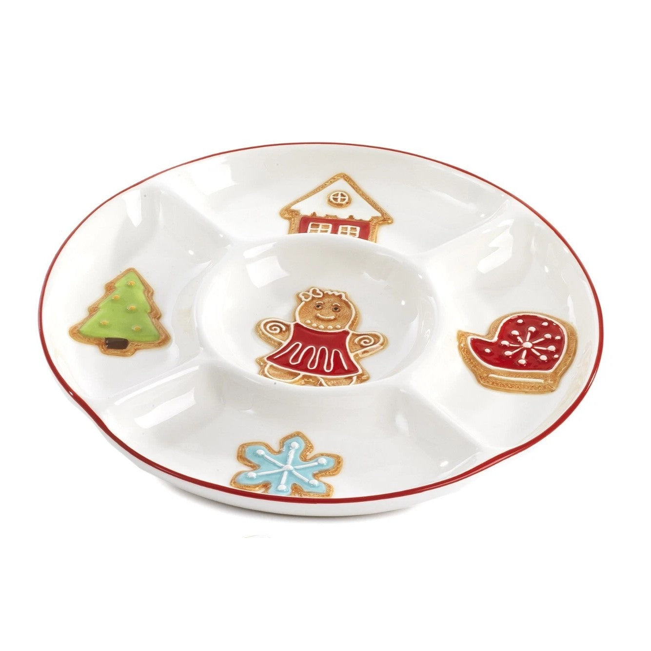 Antipastiera della collezione natalizia di Paben, realizzato in ceramica, con decori in rilievo.