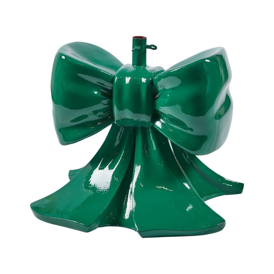 Base Per Pino a forma di fiocco della collezione natalizia di Enzo De Gasperi, realizzata in resina verde rinforzata, con finitura lucida.