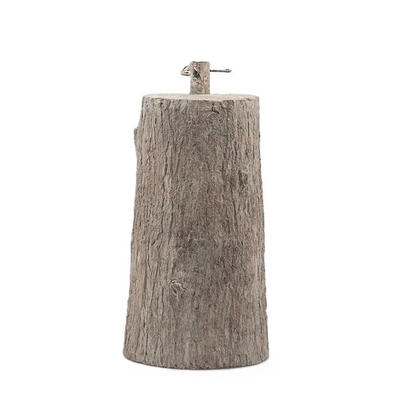 Base Tronco per pino della collezione natalizia di Enzo De Gasperi, realizzato in cemento effetto legno; con altezza di 55 cm. e diametro di 30 cm.