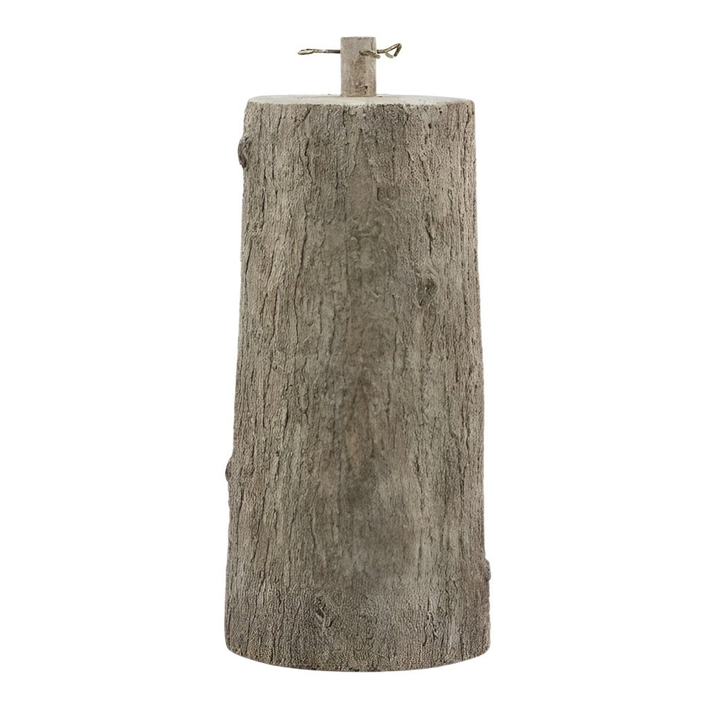 Base Tronco per pino della collezione natalizia di Enzo De Gasperi, realizzato in cemento effetto legno; con altezza di 65 cm. e diametro di 32 cm.