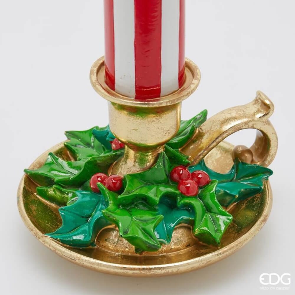 Candela con piattino della collezione natalizia di Enzo De Gasperi, realizzata in resina, con led integrato.