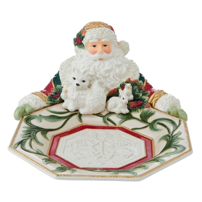 Vassoio della collezione Fitz and Floyd di Lamart, realizzato in porcellana lucida, adornato con dettagli natalizi.
