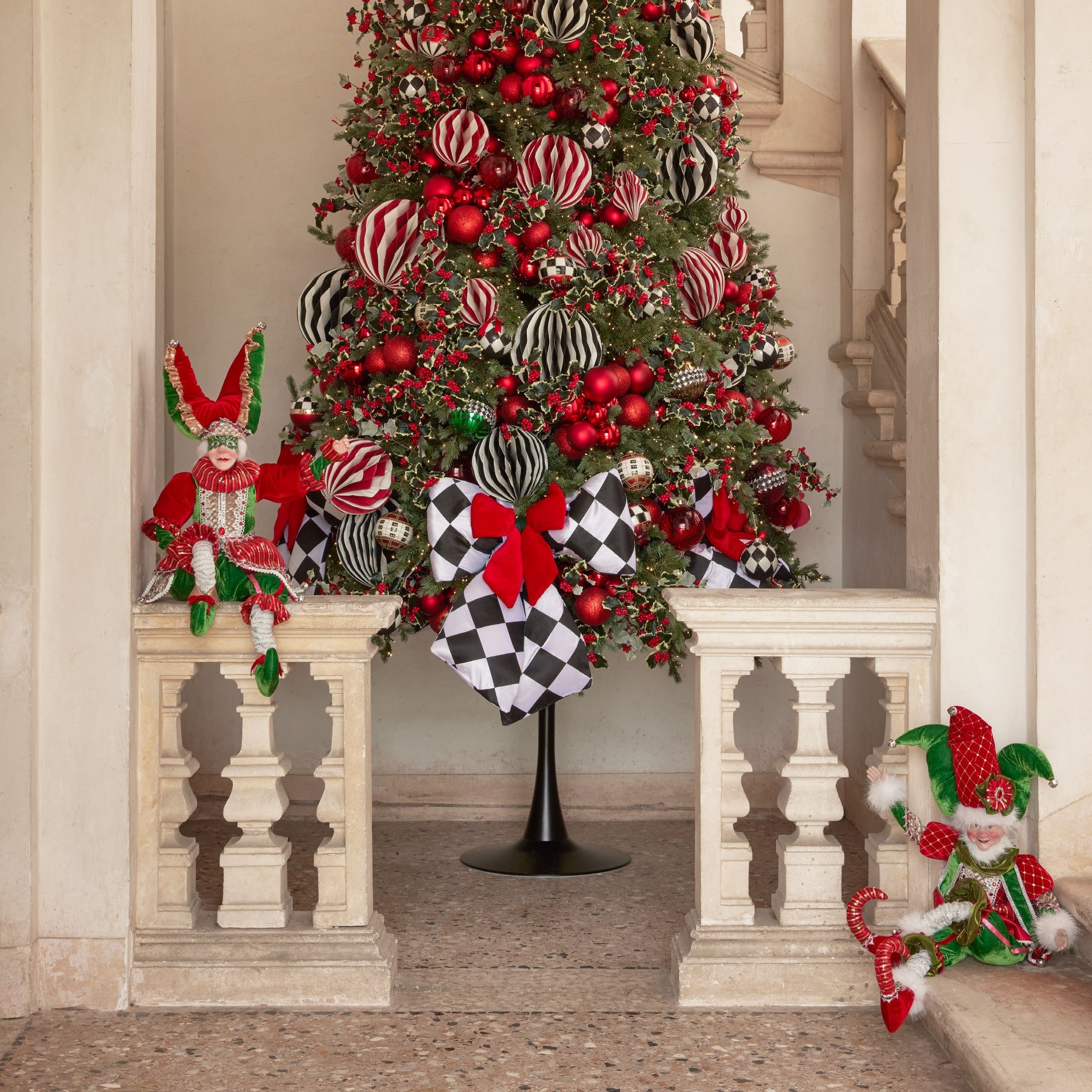 Decoro Elfo della collezione natalizia di Enzo De Gasperi, realizzato in resina, con abiti in velluto.