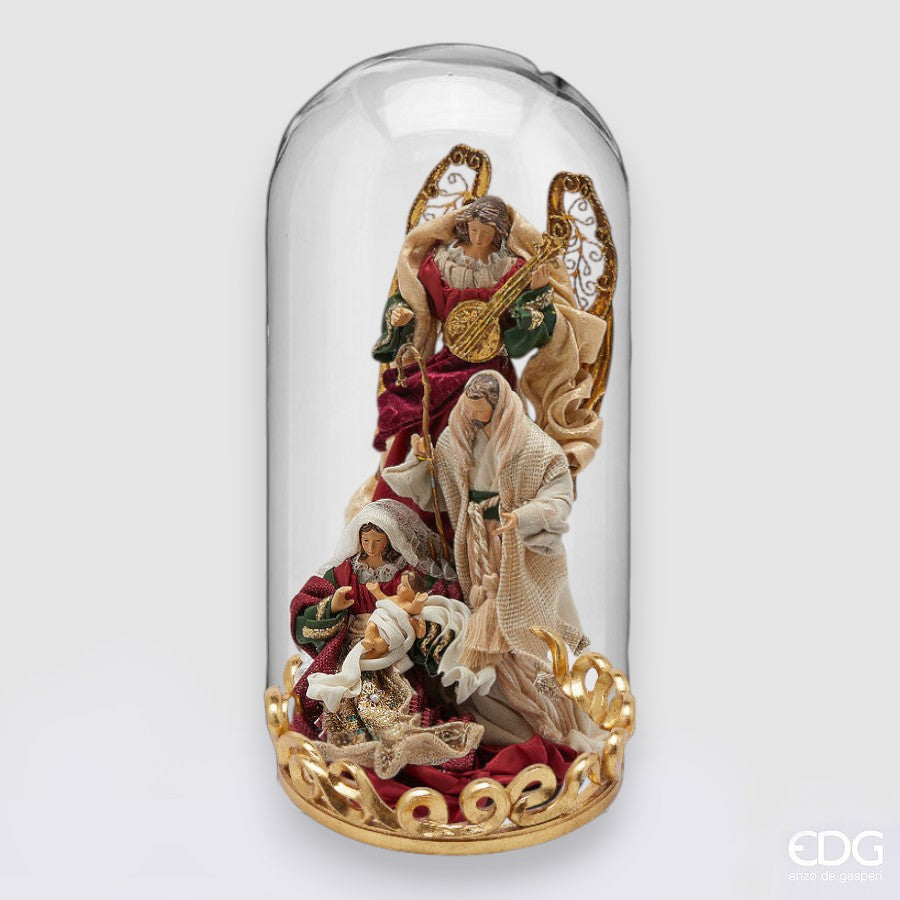 Natività della collezione natalizia di Enzo De Gasperi, realizzata con base in resina dorata e cupola in vetro.