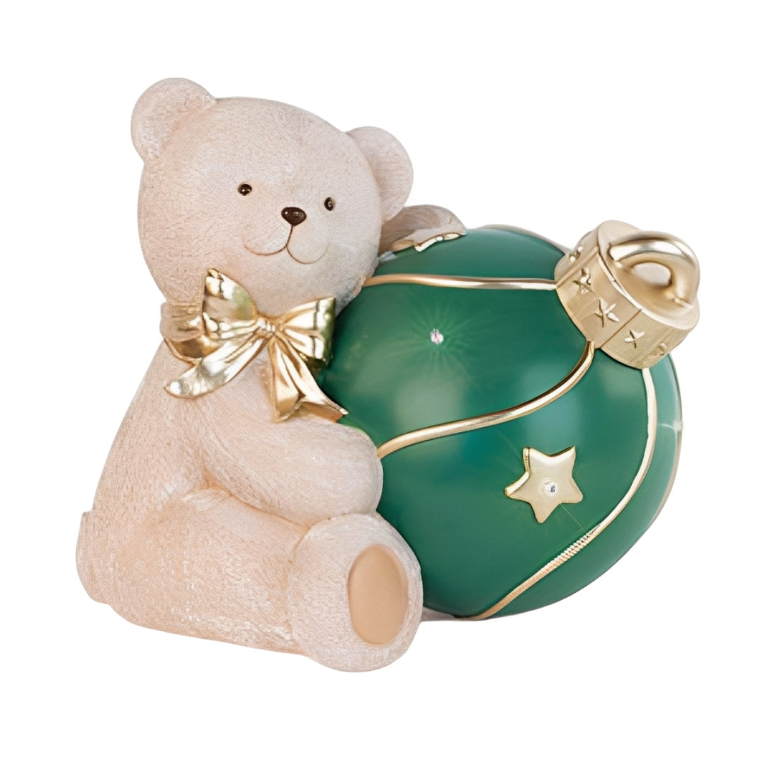 Orsetto con Fiocco Oro della collezione natalizia di TonoSuTono, realizzato in resina, con sfera con luci led incorporate.