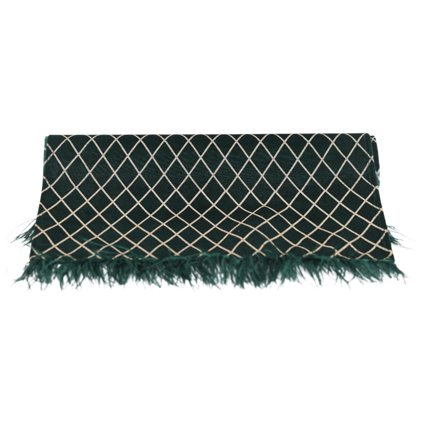Runner rettangolare della collezione "Sofisticata Bellezza" di Fiori di Lena, realizzato in velluto con effetto geometrico glitter e piume alle estremità.