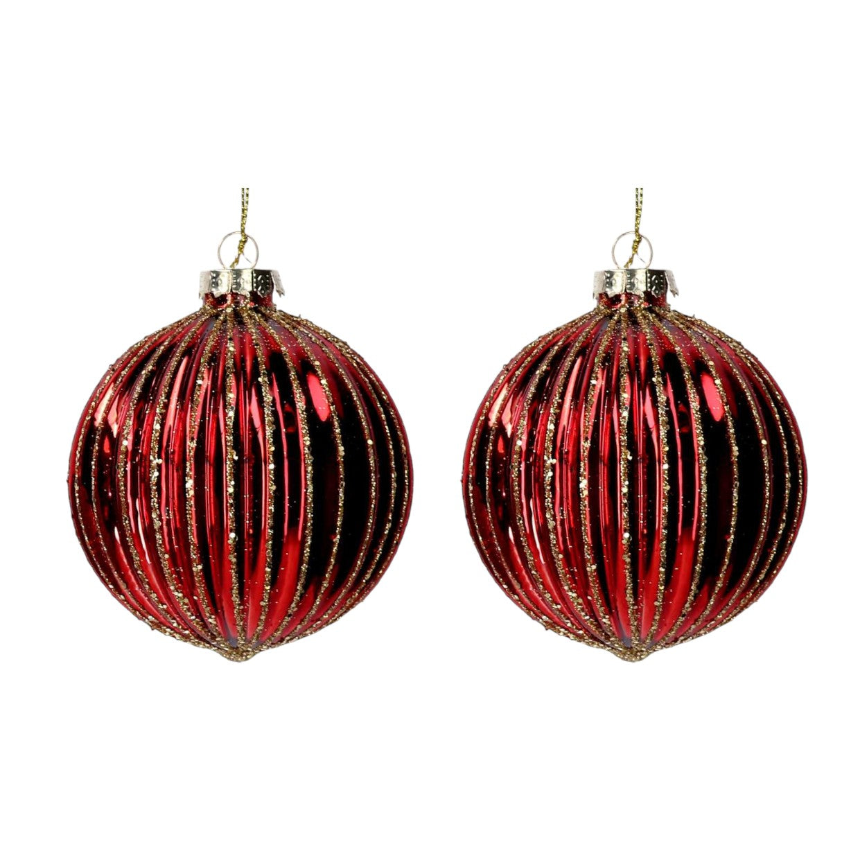 Set 12 Sfere Natalizie della collezione "Christmas" di Prestigio Casa, realizzate in vetro rosso con decori glitter.