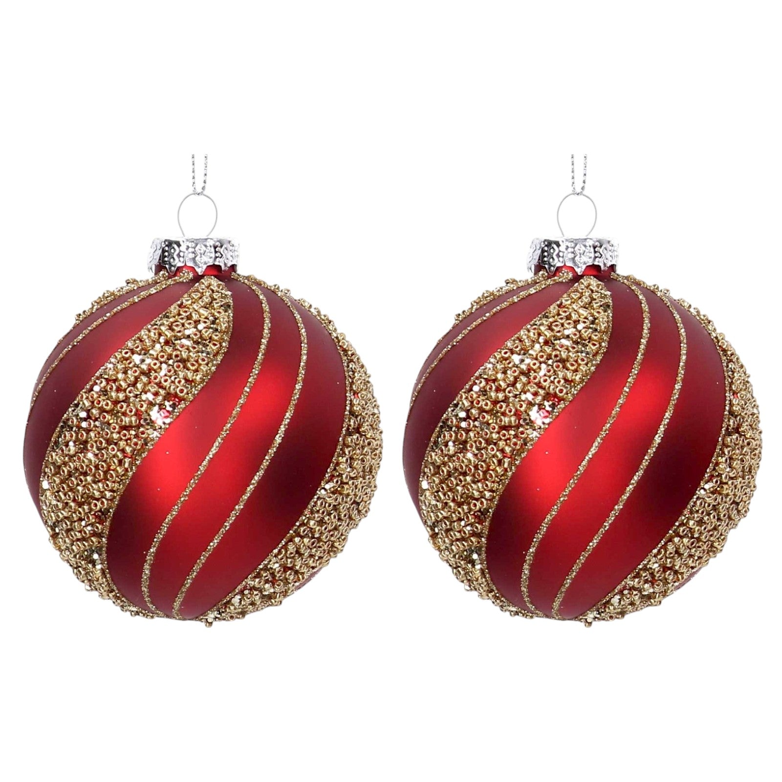 Set 12 Sfere Natalizie della collezione "Christmas" di Prestigio Casa, realizzate in vetro rosso con decori glitter oro.