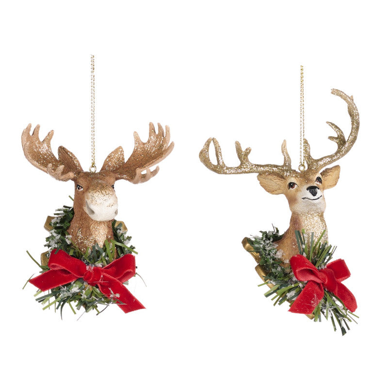 Set da 2 addobbi alce e cervo della collezione natalizia di Goodwill, realizzati in resina decorata.