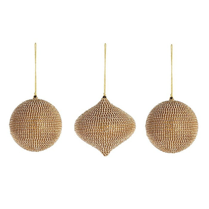 Set da 3 sfere natalizie assortite della collezione di TonoSuTono, realizzate in resina impreziosite da cristalli bianchi.