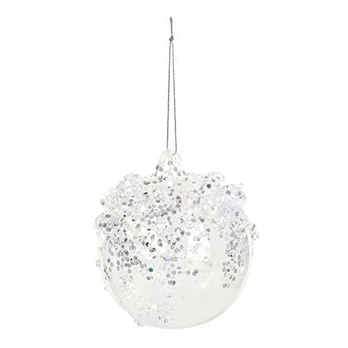 La particolare finitura effetto ghiaccio regala luminosità e un tocco sofisticato, perfetto per chi desidera un addobbo natalizio dal fascino contemporaneo.