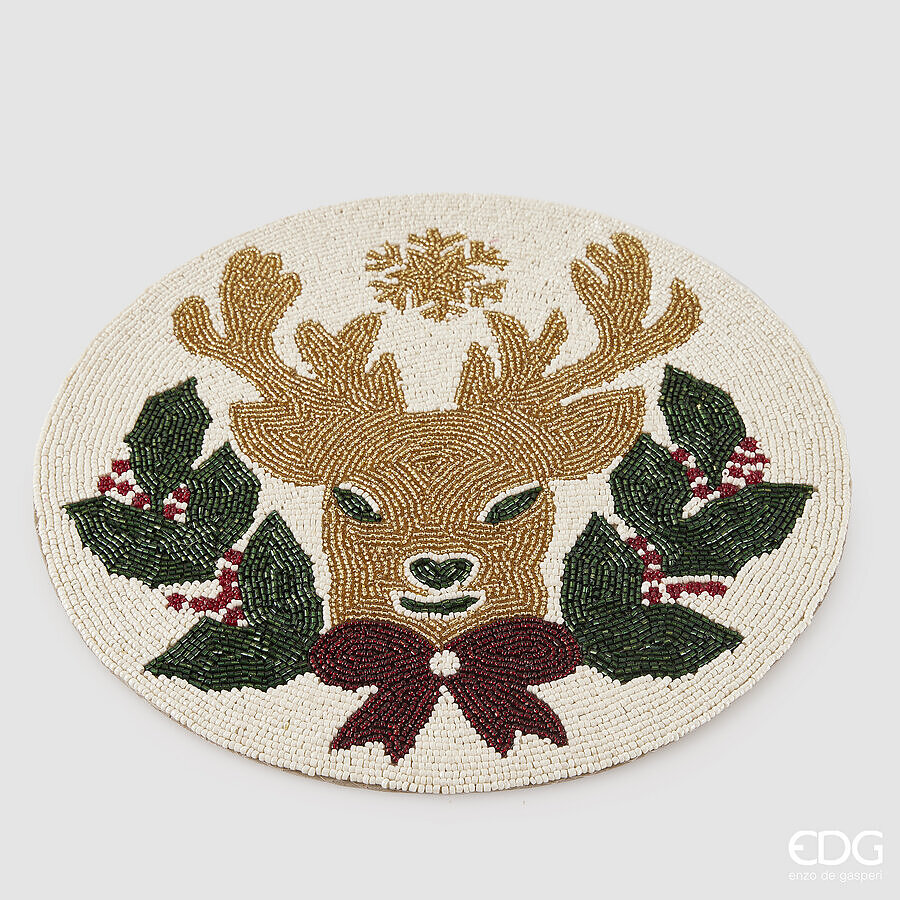 Set 6 Sottopiatti tondi, appartenente alla collezione natalizia di Enzo De Gasperi, realizzato in tessuto decorato con perline che donano riflessi brillanti.
