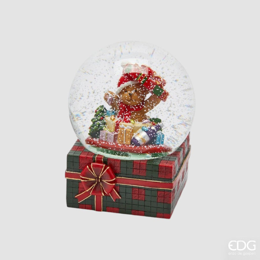 Sfera Orsetto della collezione natalizia di Enzo De Gasperi, realizzata in resina, con musica e movimento integrato.