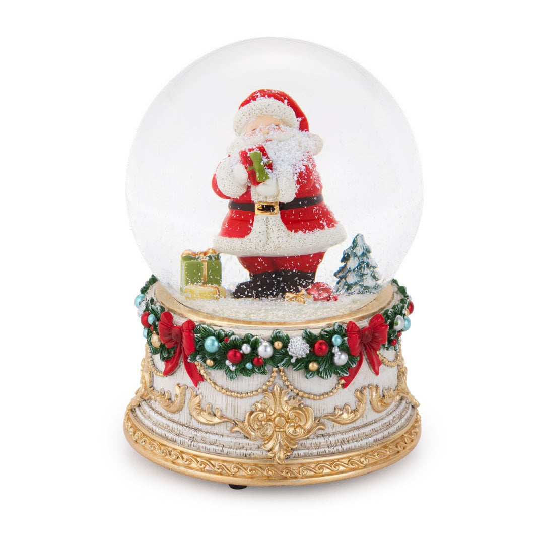 Sfera Carillon Babbo Natale con doni della collezione "Prestige Carillon"di Henriette, realizzata in resina con finitura lucida.