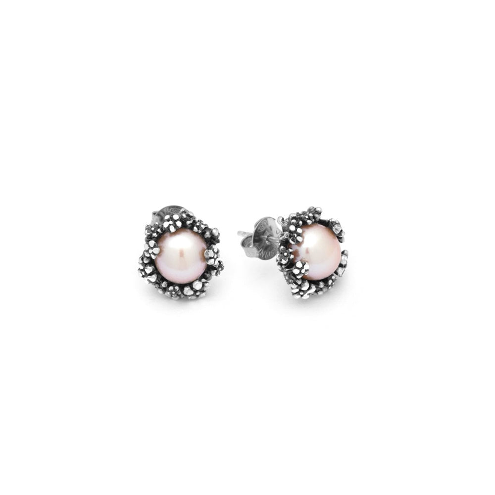 Orecchini della collezione "Blossom"di Giovanni Raspini, realizzati in Argento 925% brunito e diamantato, impreziositi da due perle rosa naturali d'acqua dolce.