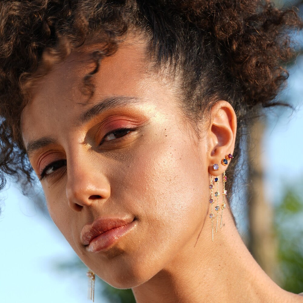 Orecchino Serenity Lovli realizzati in Argento 925% rodiati in Oro Giallo 18 kt., impreziositi da zirconi blu.