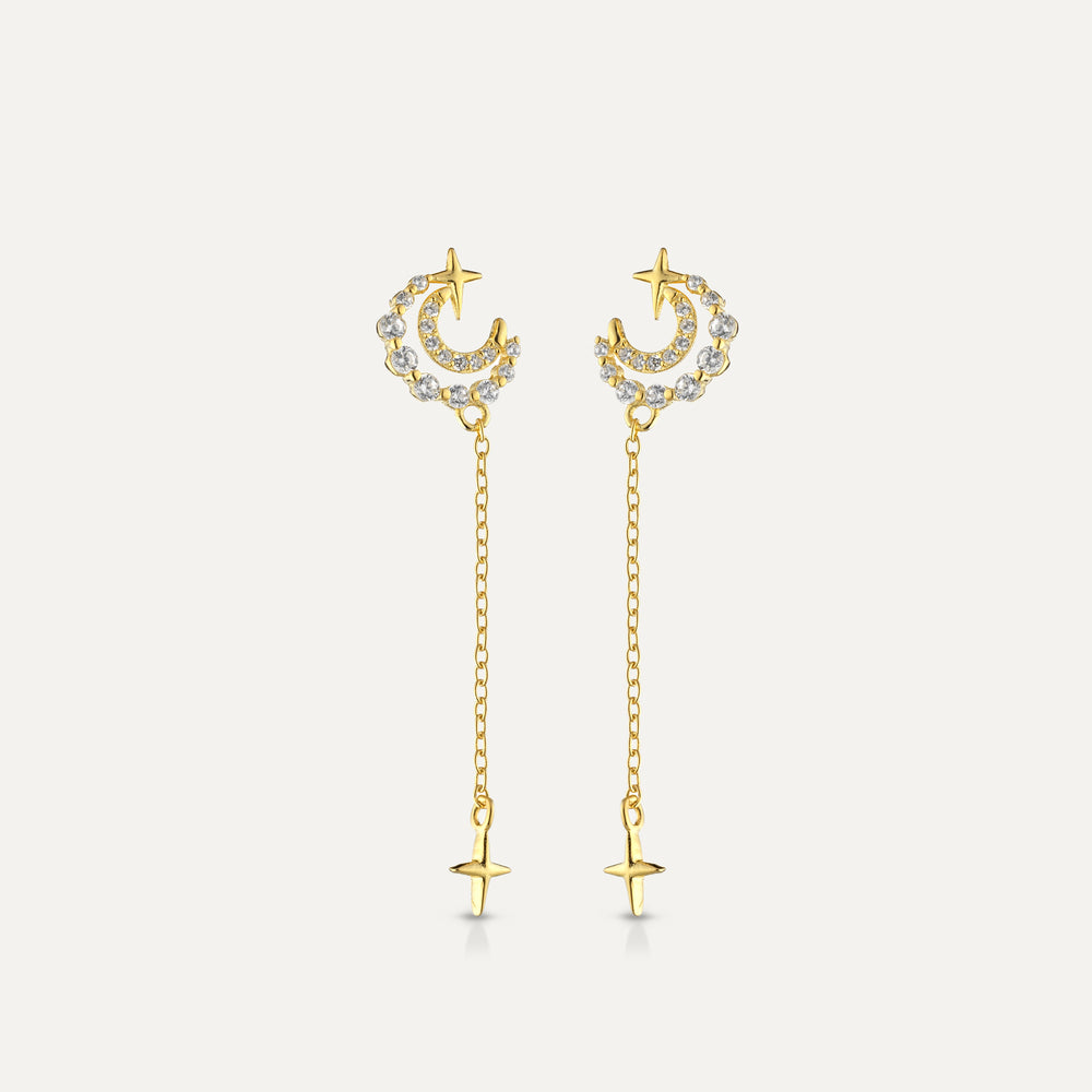 Orecchini Moon Gold realizzati in Argento 925% rodiati in Oro Giallo 18 kt., impreziositi da zirconi bianchi.