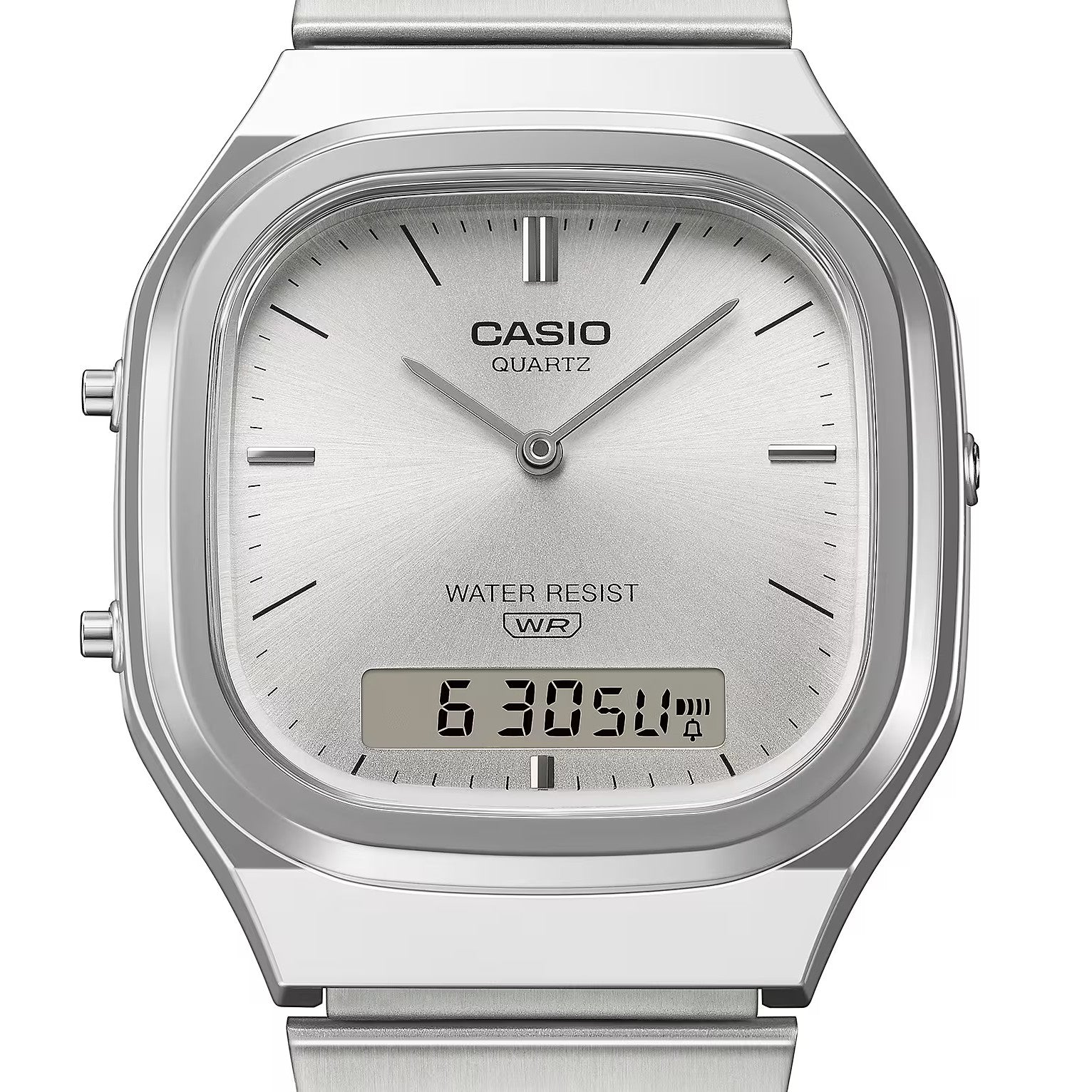 Il quadrante digitale ad alto contrasto offre numerose funzionalità pratiche: luce LED per una lettura chiara anche al buio, cronometro, calendario automatico con giorno, data e mese, sveglia e allarme giornaliero con segnale acustico. L’orario può essere visualizzato nei formati 12 o 24 ore, secondo le tue preferenze.