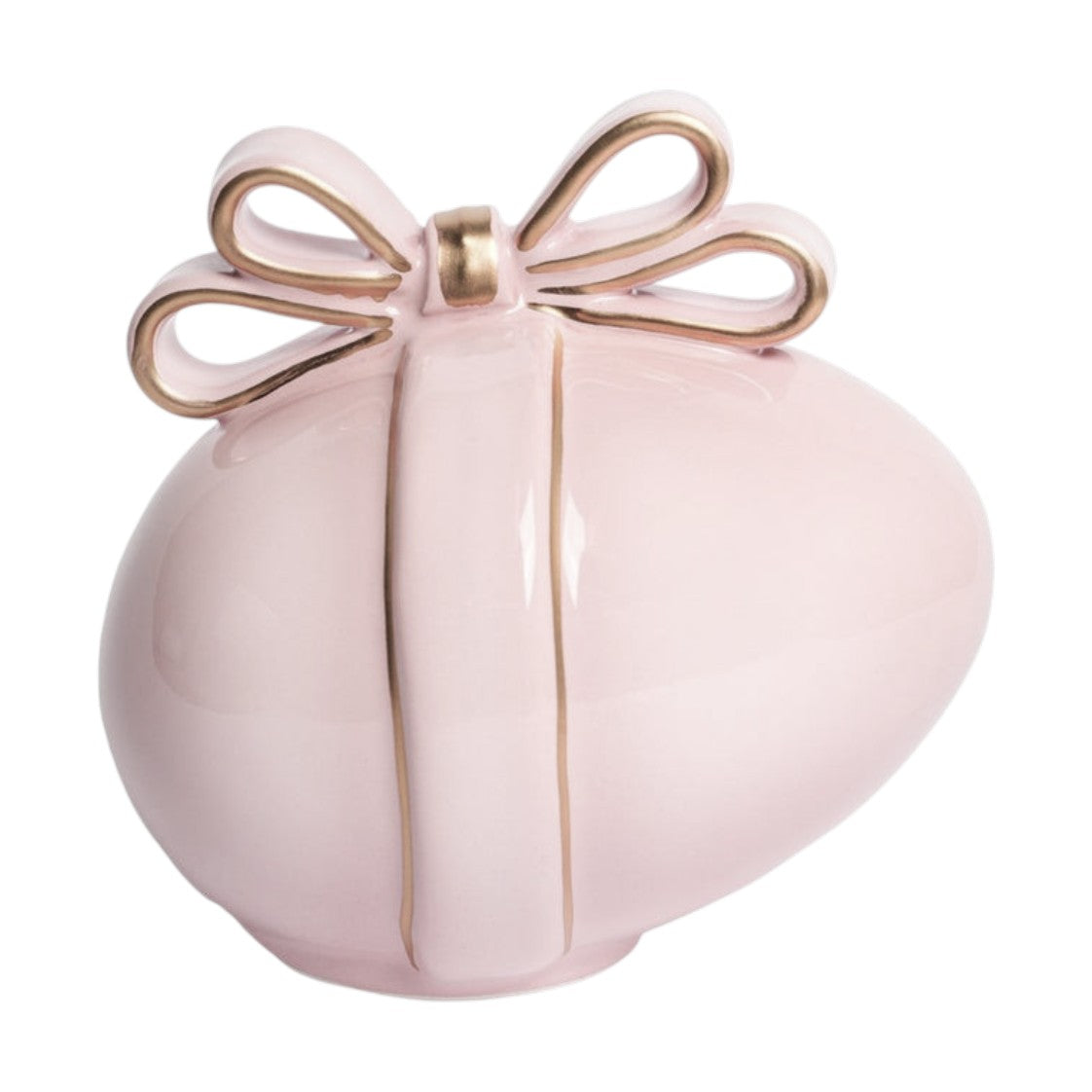 Uovo Fiocco Rosa Cipria Dea Capodimonte h. 13 cm.