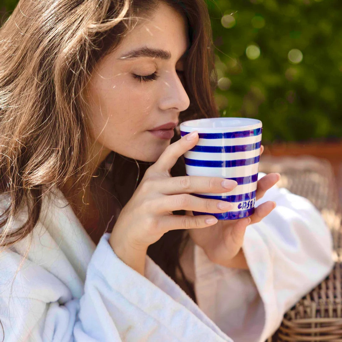 Ogni candela è custodita in una tazza in ceramica dipinta a mano, riutilizzabile.