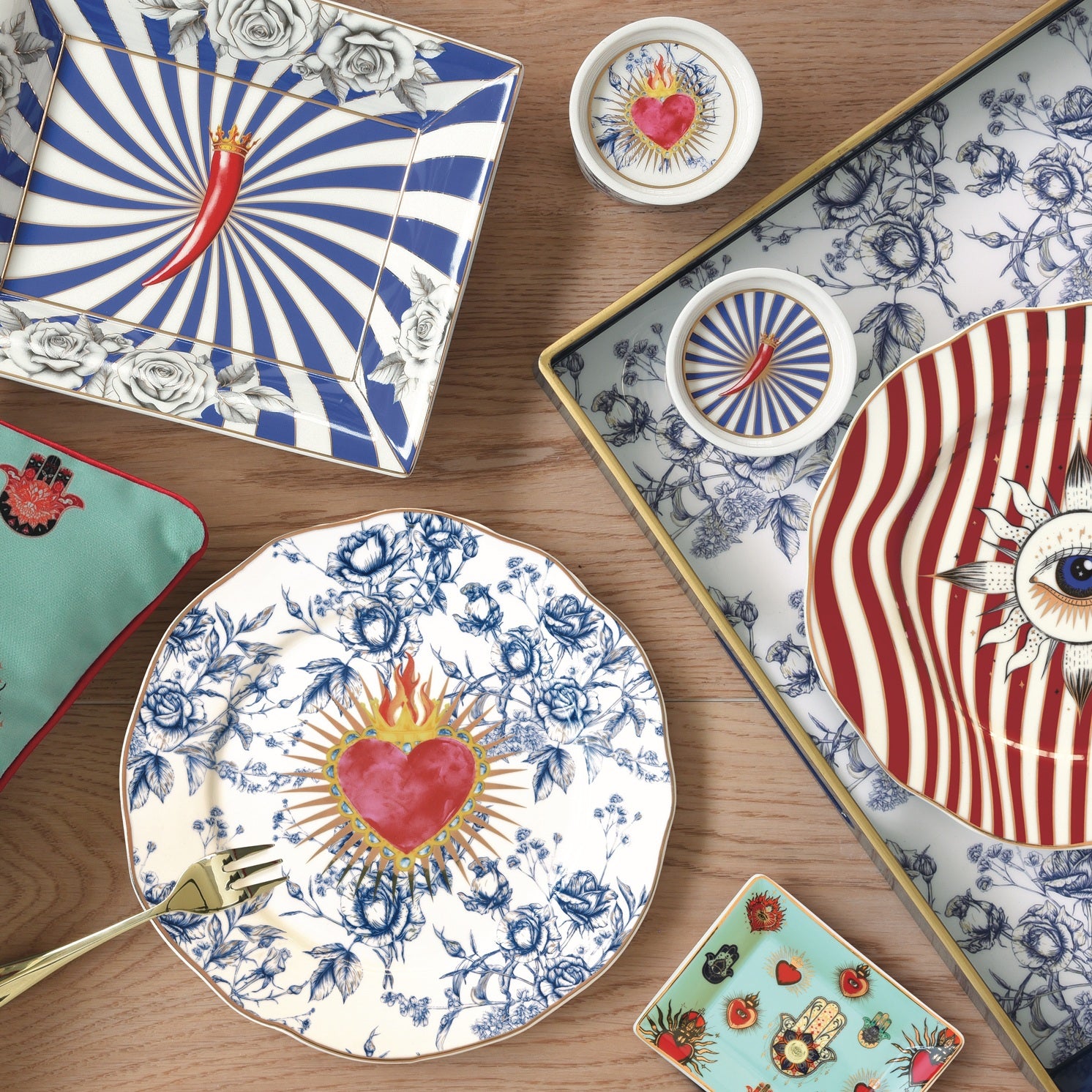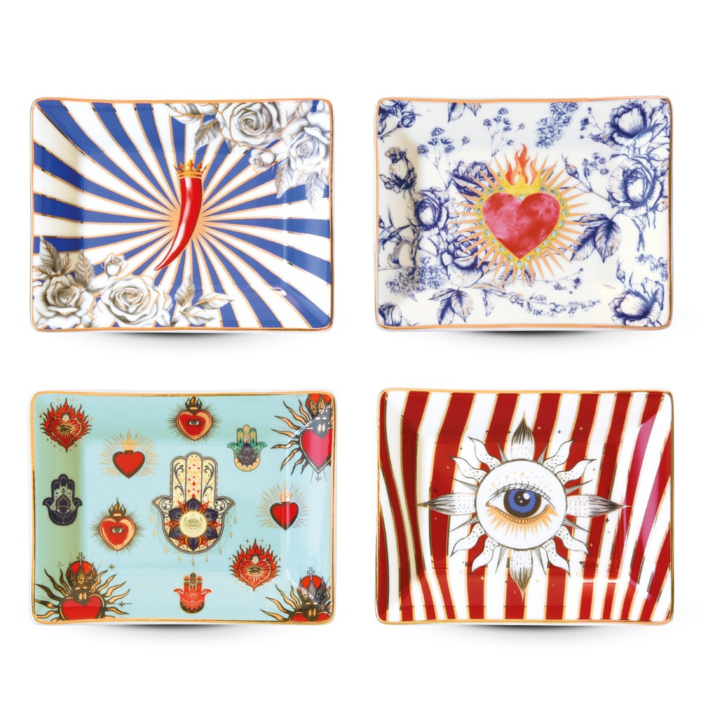 Set 4 Mini Svuotatasche della collezione Icons di Pozzi Milano, realizzati in porcellana decorata.