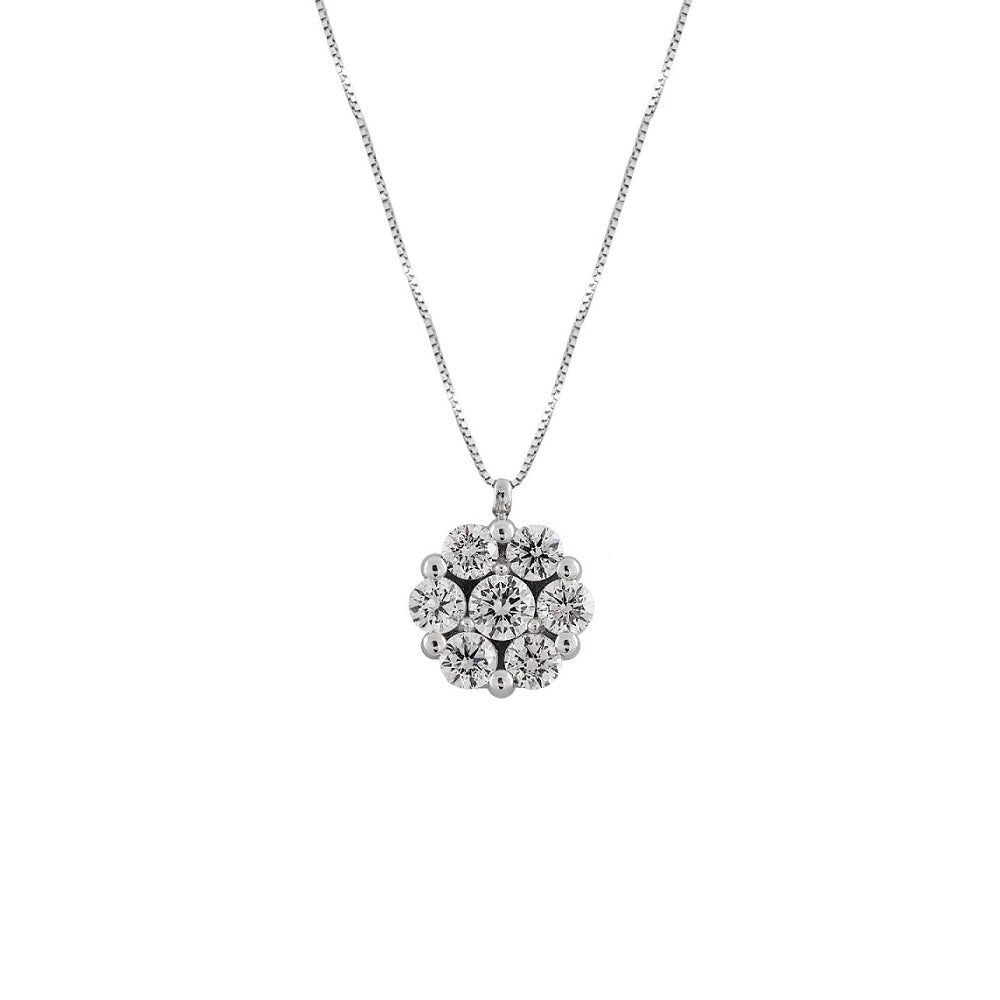 Collana in Oro Bianco 18kt con diamanti e smeraldo centrale.