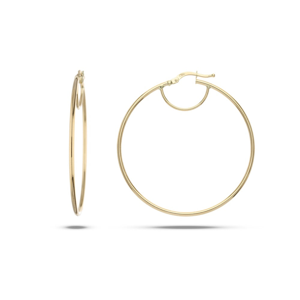 Orecchini a cerchio da donna della Collezione Prestigio Gioielli, realizzati in Oro Giallo 18kt. con canna liscia e chiusura a scatto.