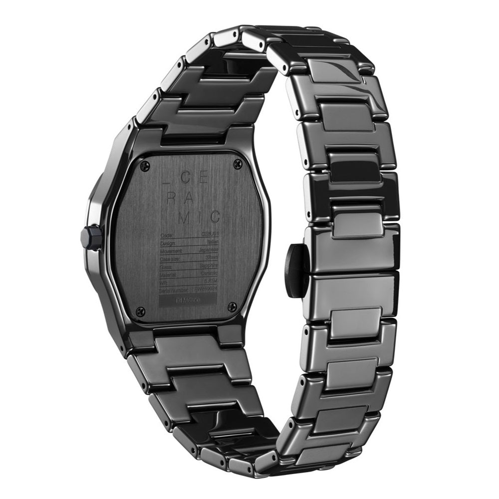 Il cinturino è realizzato in ceramica nera con chiusura deployante.