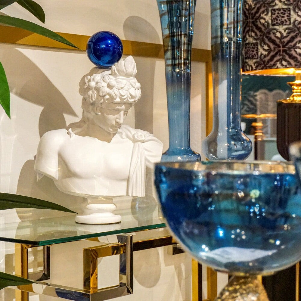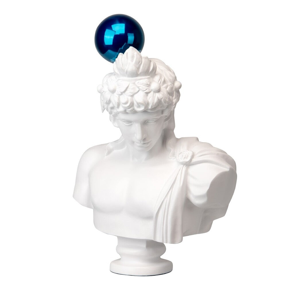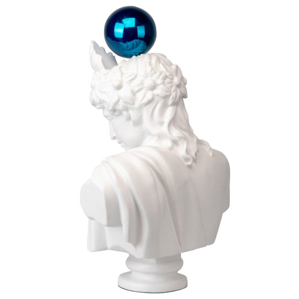 Scultura Decorativa di Ethan Chloe, realizzata in resina bianca con decorazione dai toni del blu.
